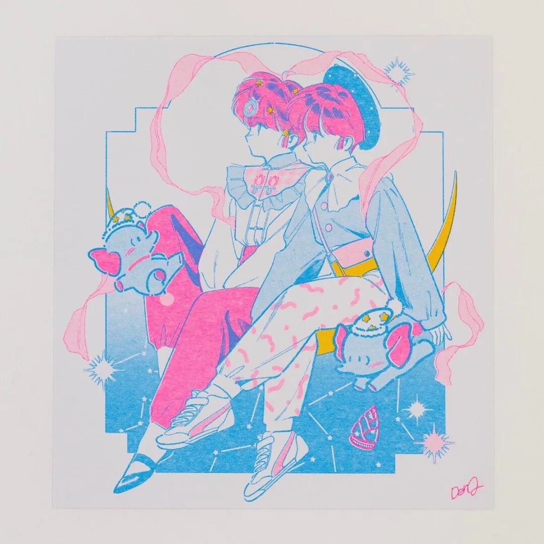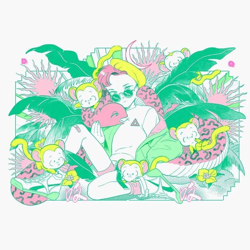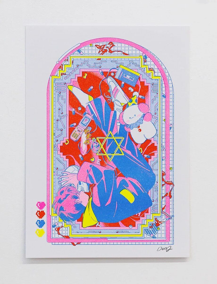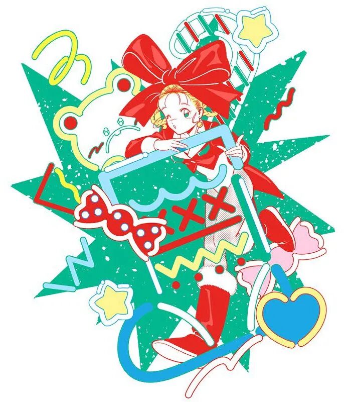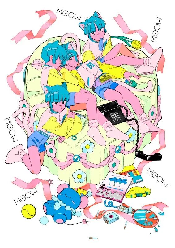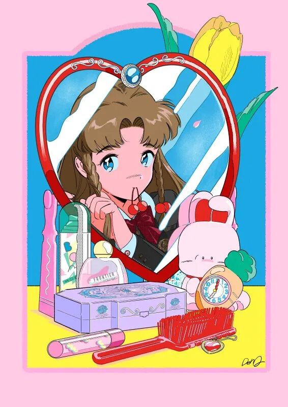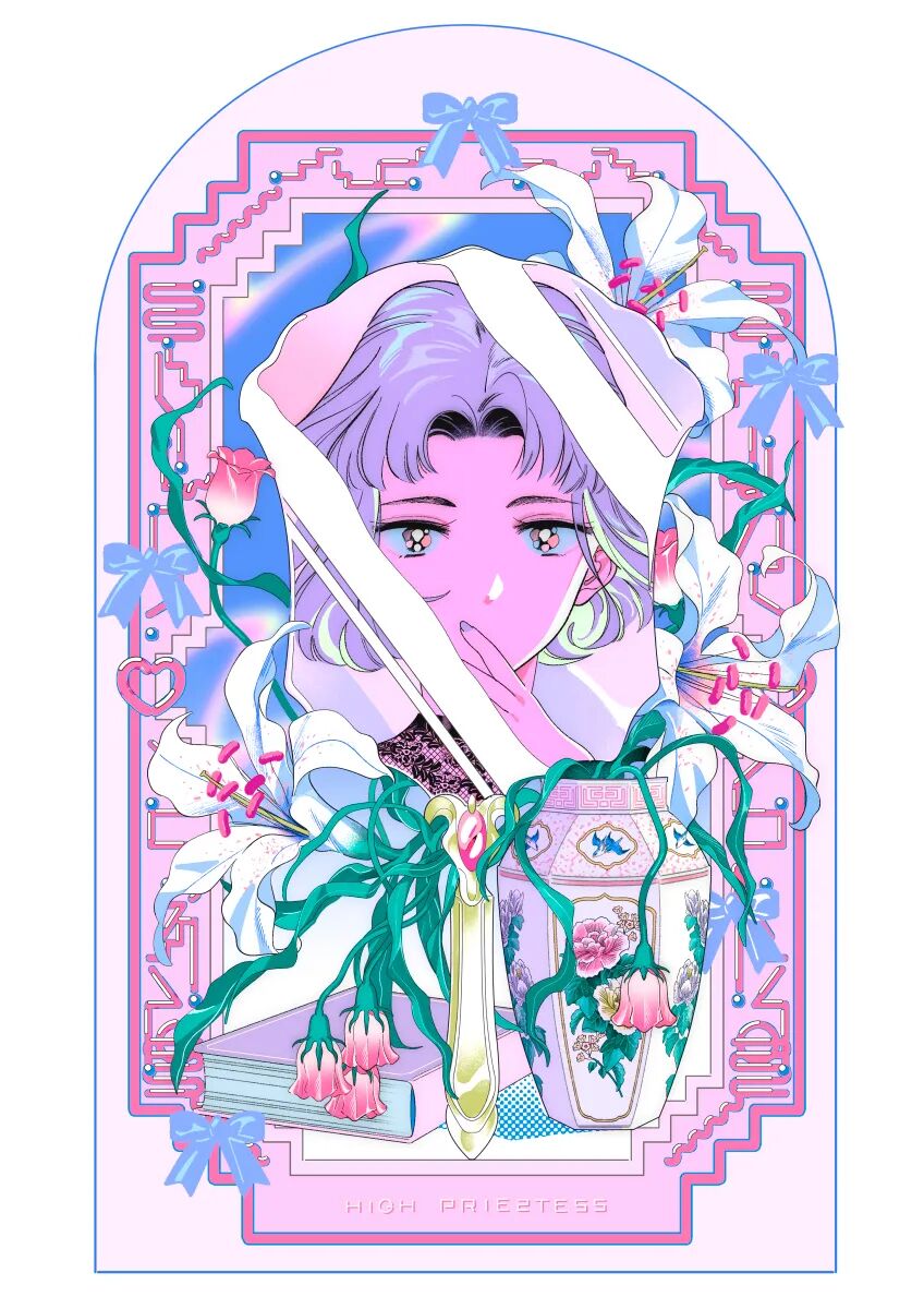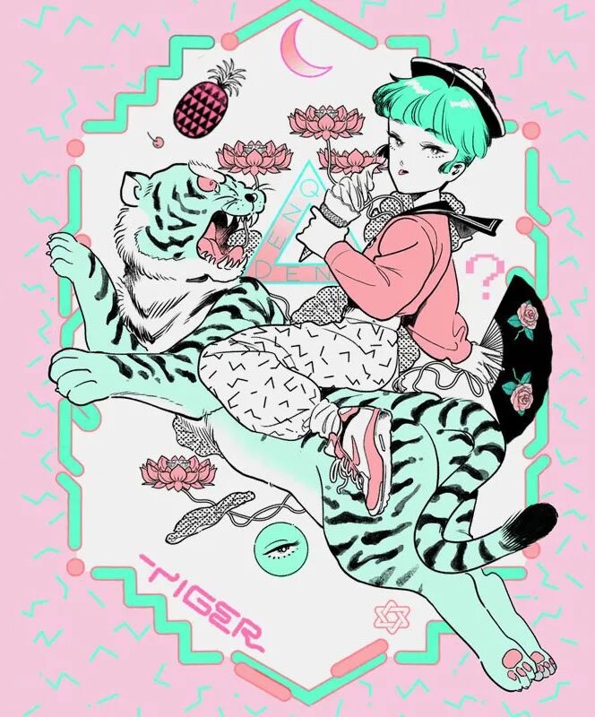 電Q / DenQ,日本插画师,出生于琦玉。DenQ 的作品充满了上世纪80、90年代日本流行文化的影子,擅长创作日漫风格的插画,清凉复古、青春靓丽是其作品的典型特征。