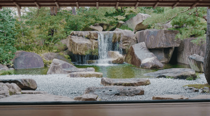 日式庭院中出现的水琴窟与水滴石,都是水声在景观中的展现,这种静谧的水声,给人一种远离尘嚣之感,为空间增添一层安静的美感。
