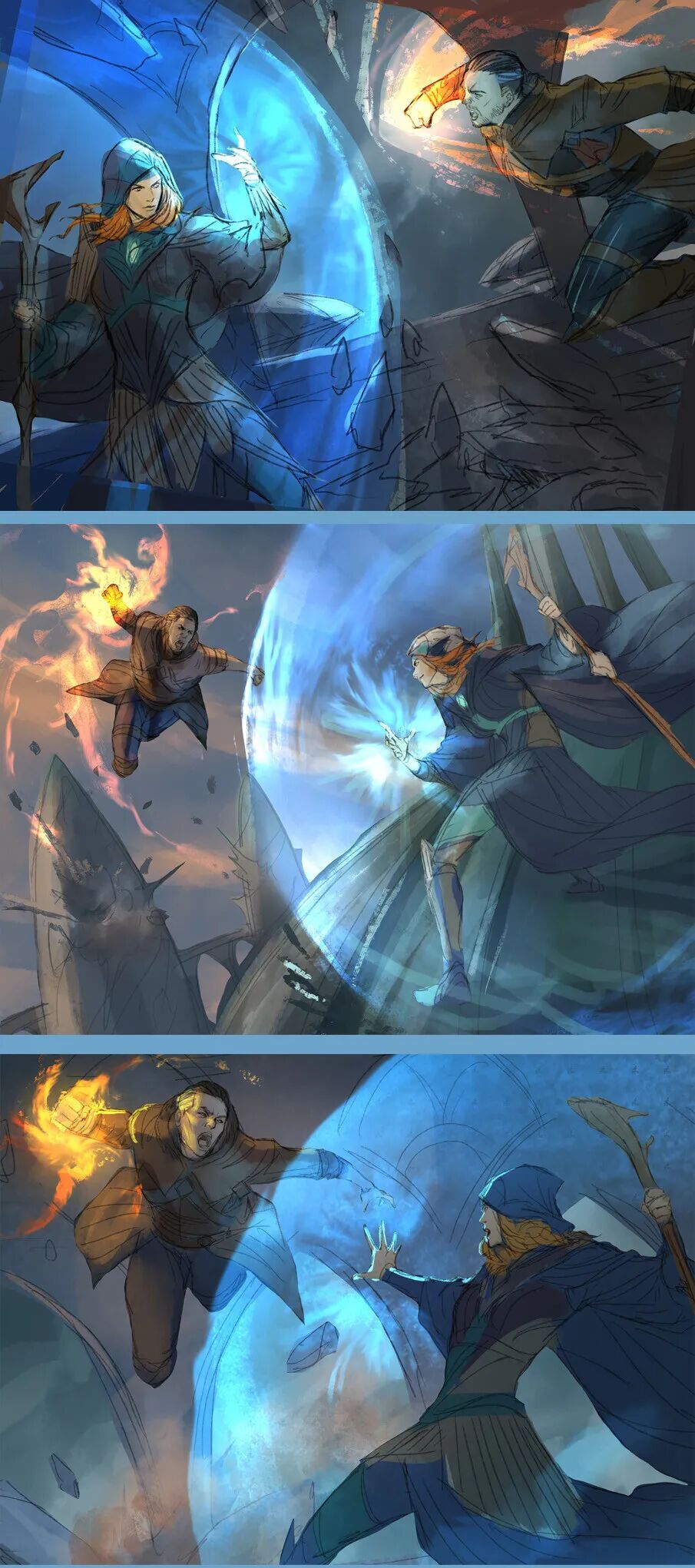 来自印度尼西亚的概念设计师/插画师,曾经为《万智牌》《战神40k》出品过原画作品,在关键帧的绘画多通过光线打造动势感,同时画作大多在明暗对比上表现突出,擅长大场景的战斗绘画,整体打造出大气的场景原画。作品中融合科幻、魔法、哥特风甚至宗教等多元素,在群像演绎方面中心突出,整体用色呈现上有着独属于印尼国家的艺术气息,精准拿捏大气场景,值得学习!