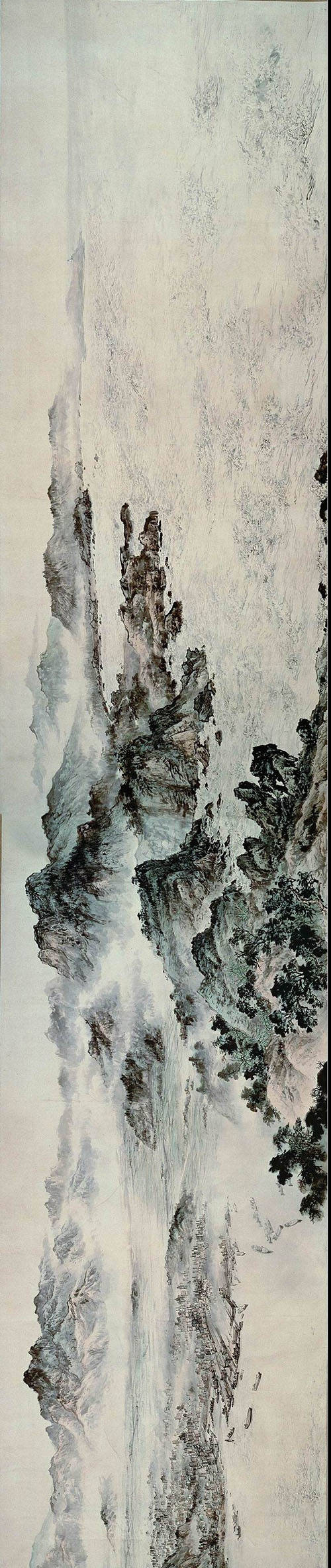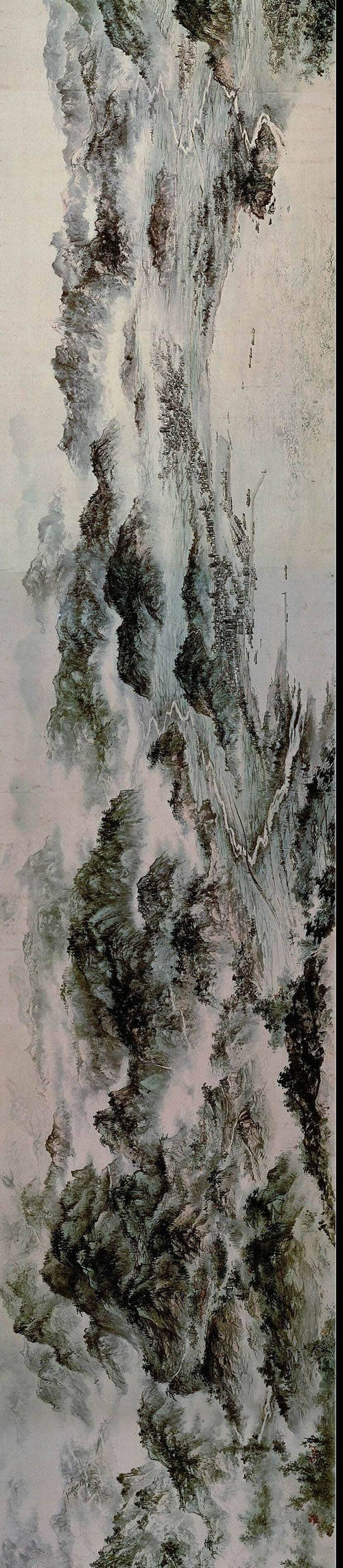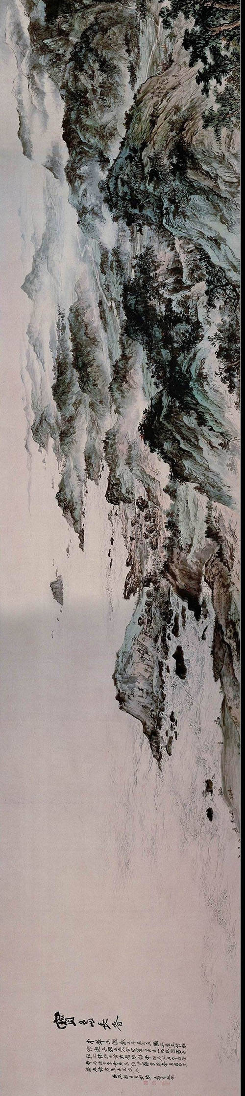 1981年7月,张大千先生应台湾“国立历史博物馆”之邀,在该馆二楼“国家画廊”为《宝岛长春图》长卷作开笔式,文艺界及新闻界多人前来观礼。《宝岛长春图》是由张大千开第一笔,若干画家共同努力完成的。此卷高约2 尺,长达215 尺,全图从构思、构图到绘制、完成,张大千都参与其中。画卷从基隆北海岸野柳、金山的海浪山水开始,经云蒸霞蔚的大霸尖山、山气氤氲的奇莱山和横贯公路,到梨山和太鲁阁,宝岛秀丽的风光尽收眼底,颇为壮观。