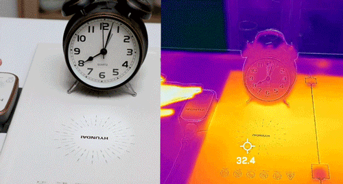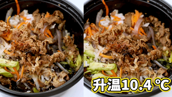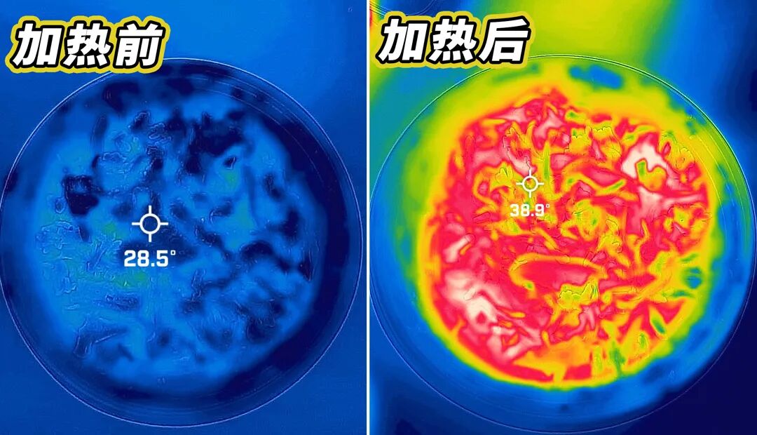 用前暖菜板整体饭菜温度很低呈现蓝色,用后可以看到温度蹭一下就上来了,红彤彤的~