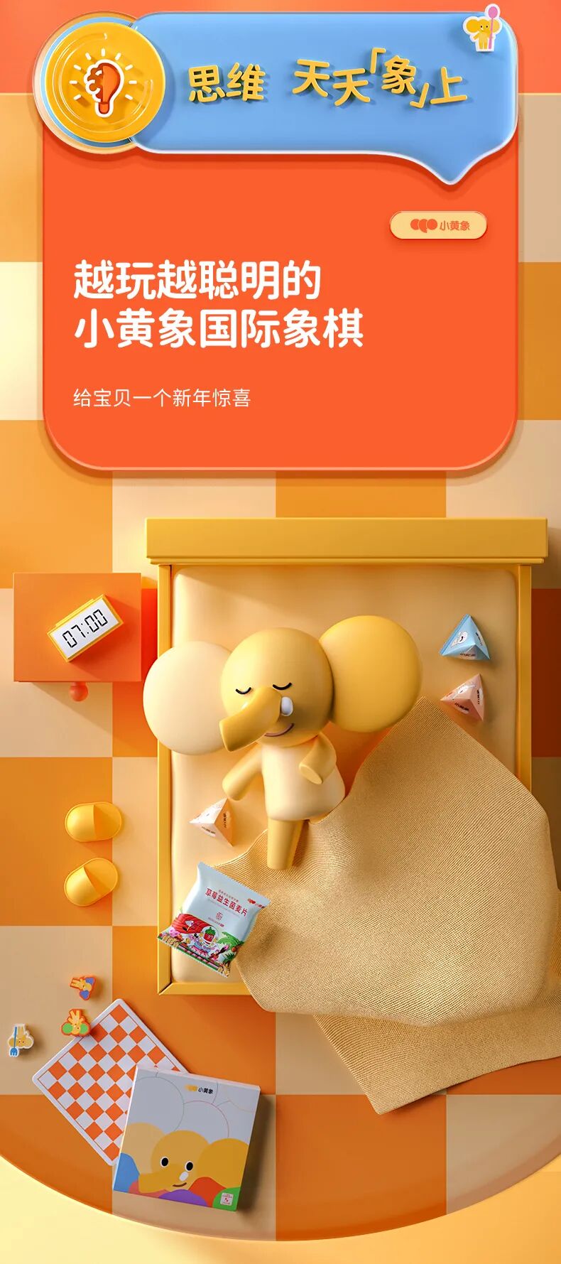 整体都是C4D设计,画风和色彩非常柔和漂亮,C4D确实很适合制作玩具类详情页。特别是开屏的场景设计,很有动画片的既视感,非常的漂亮!