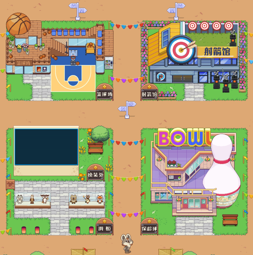 二是趣味运动小游戏。玩家可以操纵小人,前往攀岩、篮球、射箭、保龄球等游戏场馆,体验不同的休闲玩法。