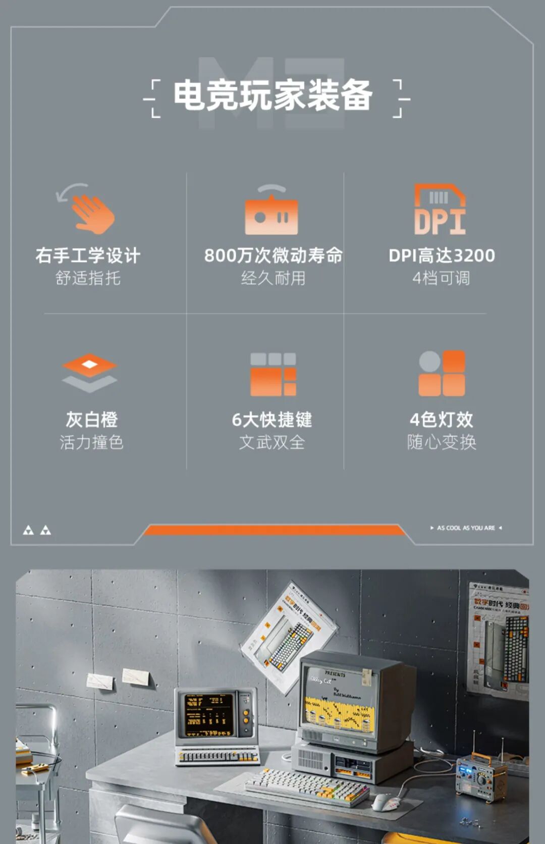 今天分享一款非常不错的鼠标详情页,灰白的背景加上橙色点缀,以及大量科技渲染画面,显得整个详情页科技和未来感十足!