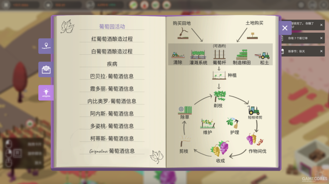 关于葡萄酒的生产,游戏要玩家亲力亲为,一切从头干起。