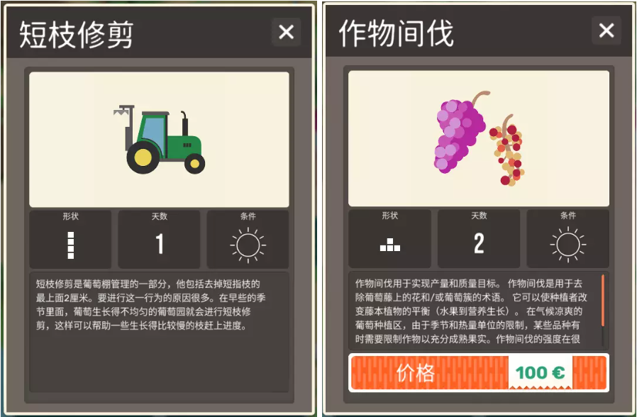 一些重要事件有时效性,它只出现一个回合;而另一些种植事件需要对应季节,若错过了最佳时机,便可能导致葡萄园的产量与品质下滑。