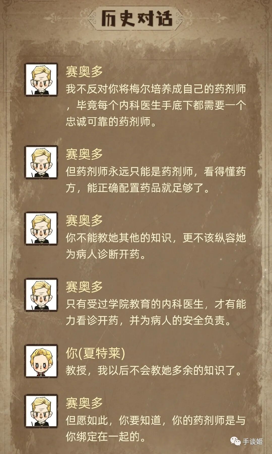 游戏值得肯定的一点,就是其中的人物没有过于的脸谱化,男主的导师捍卫传统医学,善待身边的人,但他知道旧医学其实杀死了很多无辜者;