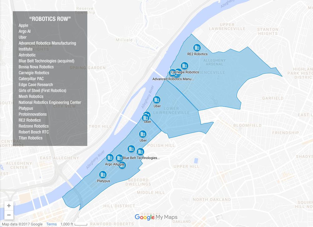 自06年谷歌把办事处搬过来之后,优步, Facebook,苹果, 博世,通用电气和塔塔在内的主要科技公司在过去几年相继都在匹兹堡开设了技术或研究办事处。2011年以来,匹兹堡机器人领域的就业增长超过了300%,同时吸引来了不少受过良好教育的年轻一代的科技人才