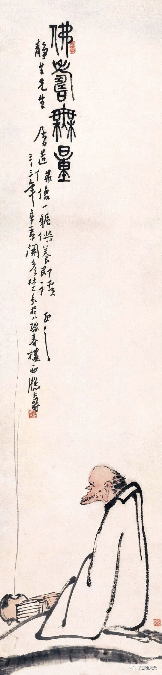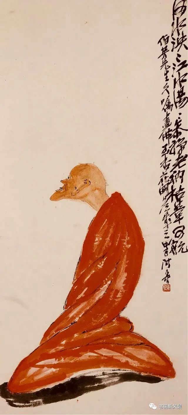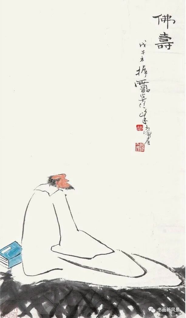 题识:河水泱泱,江水汤汤。参禅老衲,枯苇可航。伯英先生久嘱画佛,至杏花开候成之。甲子,阿寿。