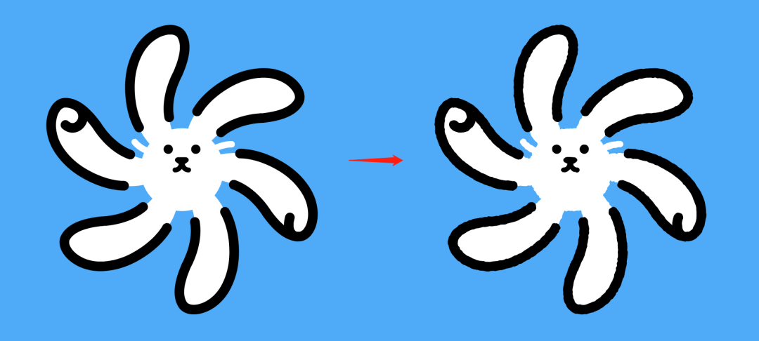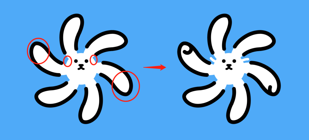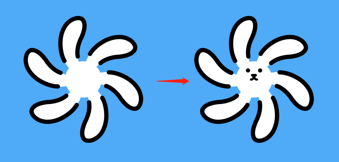 但我想尝试将兔子和风扇融合到一起,因为兔子耳朵跟风扇的扇叶在形状上有相似之处,是个很好的结合点,如下: