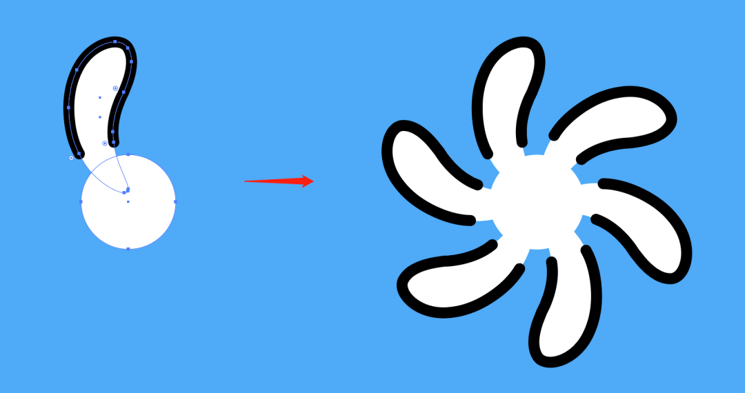 PS:因为我们要做的图形偏卡通,所以不需要照搬扇叶的造型,适当圆润些会更可爱。