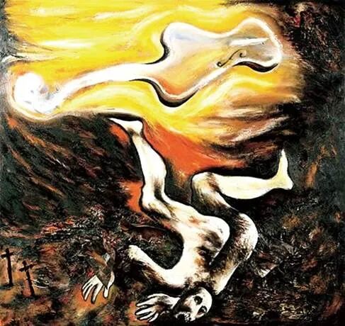 在库奇的作品中,宗教圣人和先知先民的形象被赋予了一种力度和狂暴的特征,呈现出一种原始主义的描述。库奇倾向于描绘地方传奇,他的个人神话充满了神秘和晦涩,要分辨出来是容易的,但是要判断这一类坏画粗野得好不好,还是挺难的事情。因为看画的人也要有一定的修养,缺乏对视觉语言的长期审美训练,就难以领略粗野中显现的优雅。