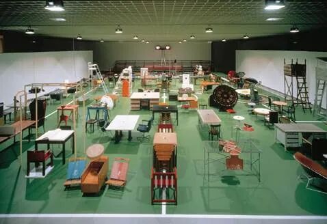 马丁1994 年的装置作品《卡夫卡快乐大结局(美国)》也是很有意味的 :像是篮球场的比赛场地上摆满了杂乱无序的桌椅,似乎象征着一个大杂烩的工作中介机构,从而阐释了卡夫卡小说里的意味。不知道有没有人说看上去就是一堆废品垃圾,各种各样的“美国”场面也出现在很多美术馆里面。而他的坏画画得痛快淋漓、毫不犹豫、极富于激情,也因为其复杂的探索和表现而难以被准确地论说,就如同画面出现的旅行者、罪犯、酗酒者、自我表现者、摇滚明星、牛仔、恶作剧者、波希米亚人、笨拙的恐怖主义者。这种复杂性模糊了艺术家的形象与定位,在身后其名声反而变得显赫起来。