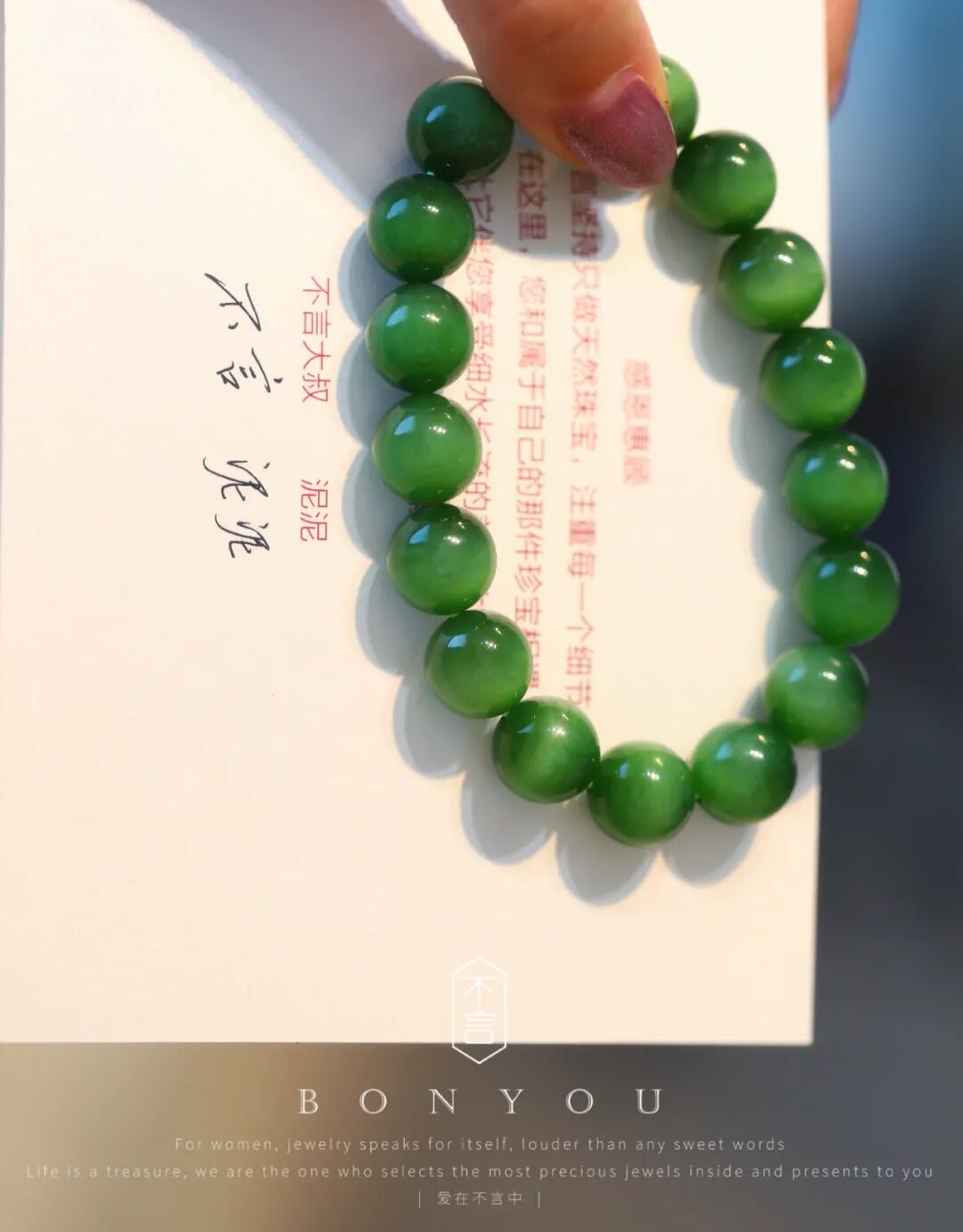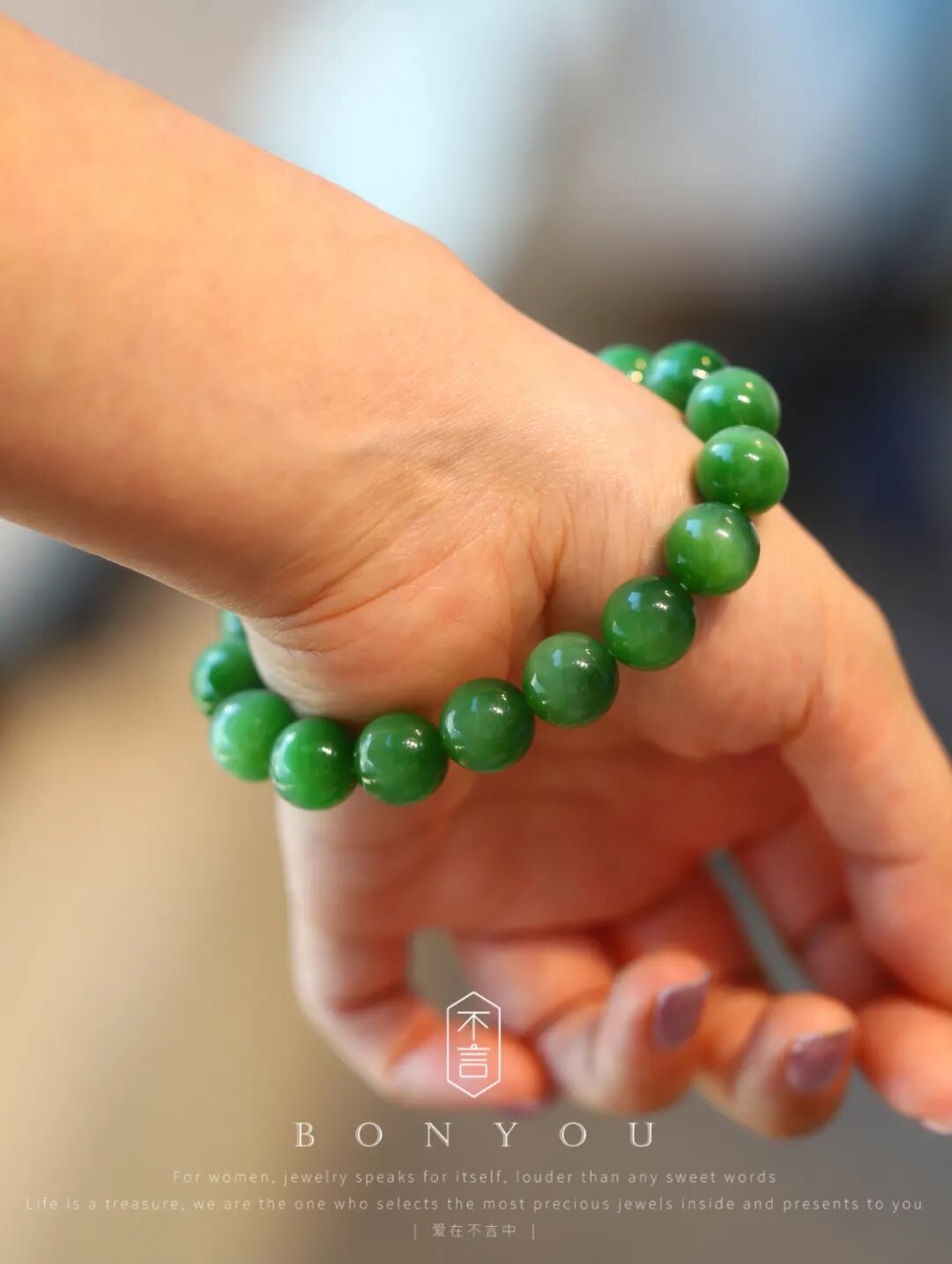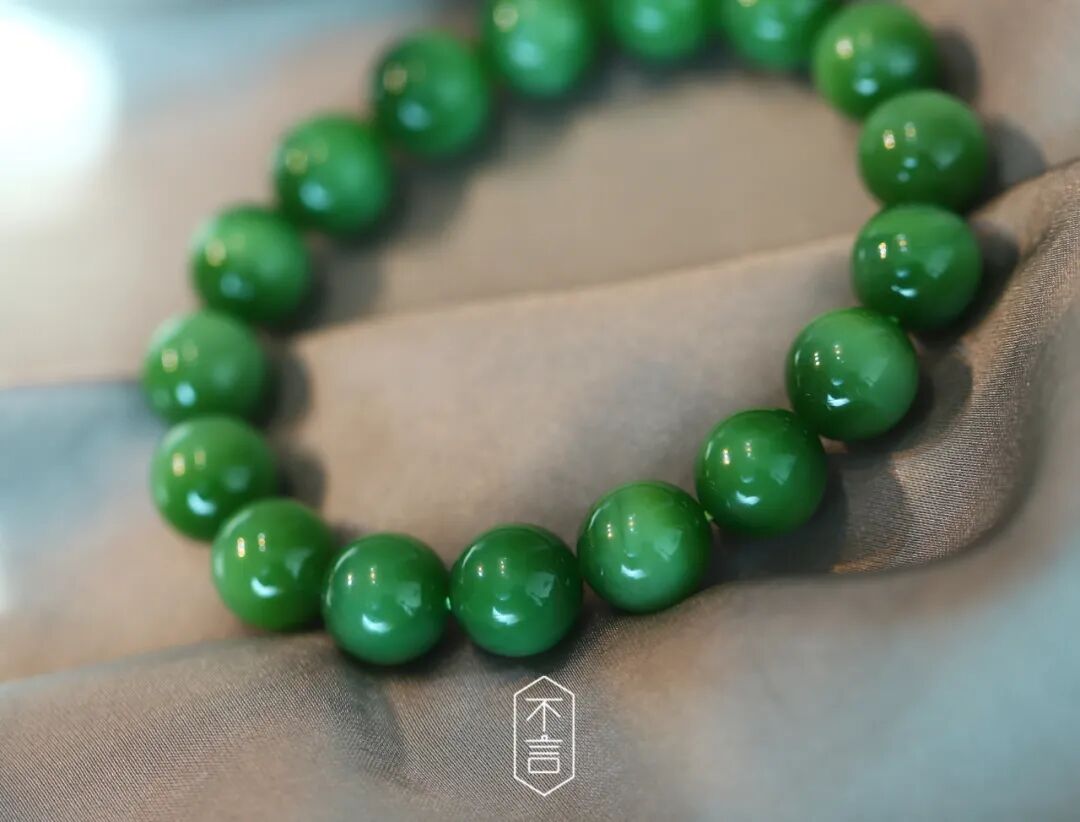 珍藏级·和田玉碧玉阳绿手串,