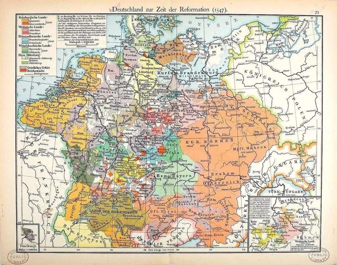 虽然同为欧洲诸国中的核心,德国却和英、法不一样——它在古罗马帝国崩毁后长时间都处于割据状态,比如1521年就有347个松散的小邦国在领土上星星点点分布着,这导致大家“各玩各的”。
