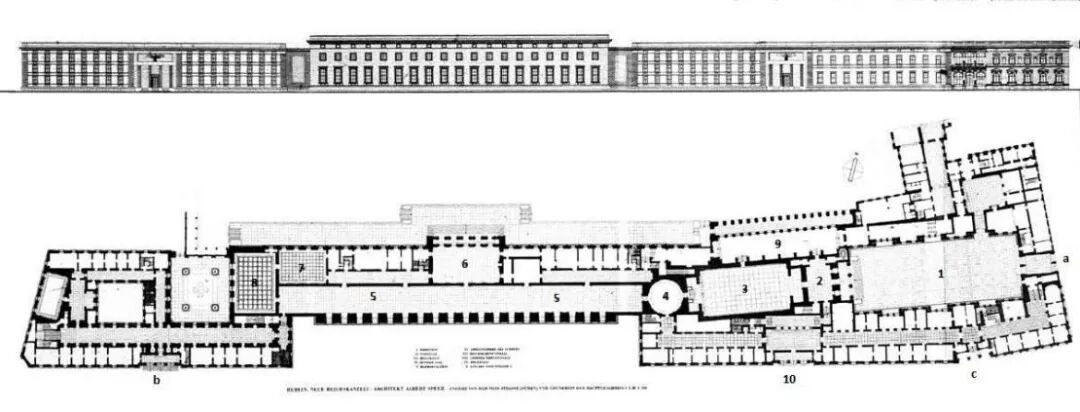 乡村建设讲究地域性的身份认同,而身份展示和象征性对于权力建筑更是设计中心,甚至可以盖过功能性,经济性等其他所有因素。德国军工部长兼首席设计师施佩尔(Albert Speer)于1938年1月到1939年1月建造完成了柏林帝国总理府的改造。作为纳粹权力的象征和纳粹建筑的代表,全面体现了极端权力影响下的建筑样貌,总统府不仅在设计风格上表达了对历史上宏伟政权的崇尚,更在其空间布局上对其它使用者起到了震慑作用,进一步强调了自身的“至高无上”。