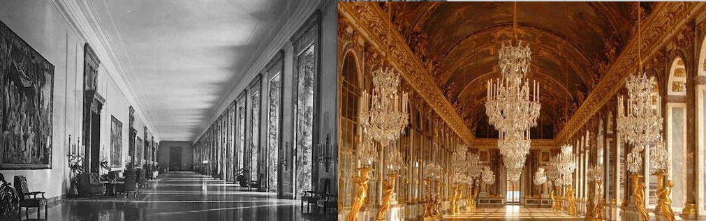 ▲ 总统府大理石长廊与凡尔赛宫镜厅,图源网络