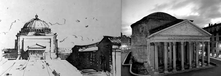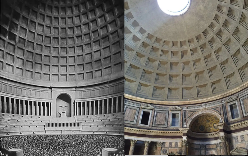 ▲ 希特勒的“大礼堂”手稿与罗马万神庙,图源网络