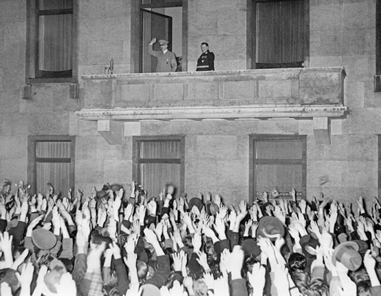▲ 在总统府的接见平台上接受民众景仰的希特勒,图源网络