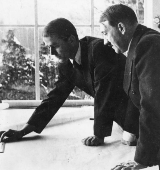 ▲ 1938年,希特勒与首席建筑师Albert Speer正在讨论建筑图纸 图源豆瓣