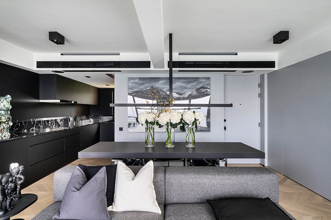 香港著名设计师DANNY郑炳坤,在这里为一对年轻的业主夫妇创作了一间极具质感的开放式简约私宅。