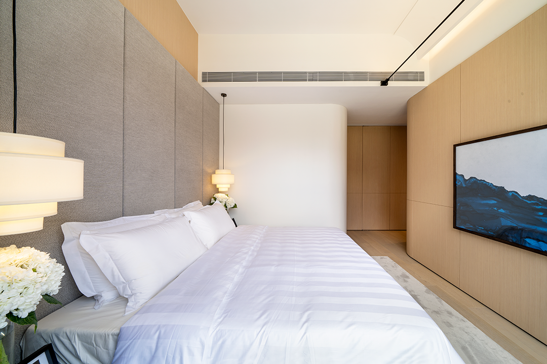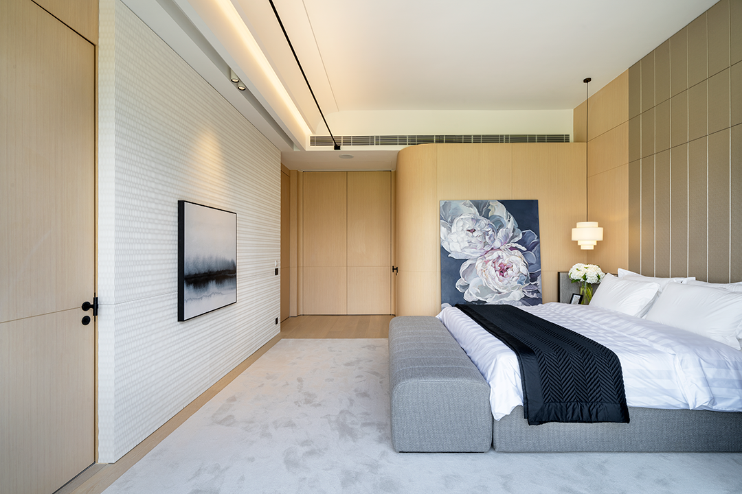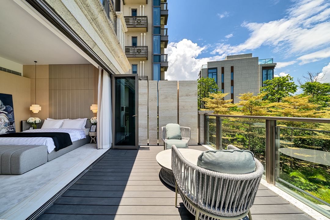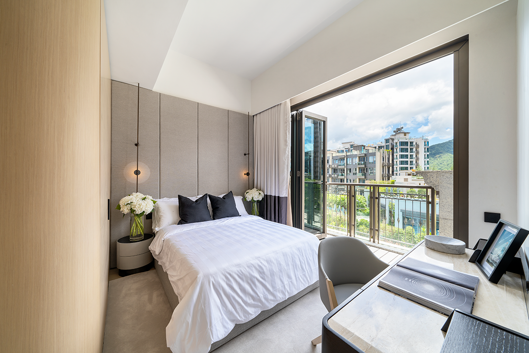 主人房享有最佳的景观视野,可鸟瞰白石哥尔夫球练习场,180度超大开间的阳台,近距离感受四季流转带来心境的起承转合。