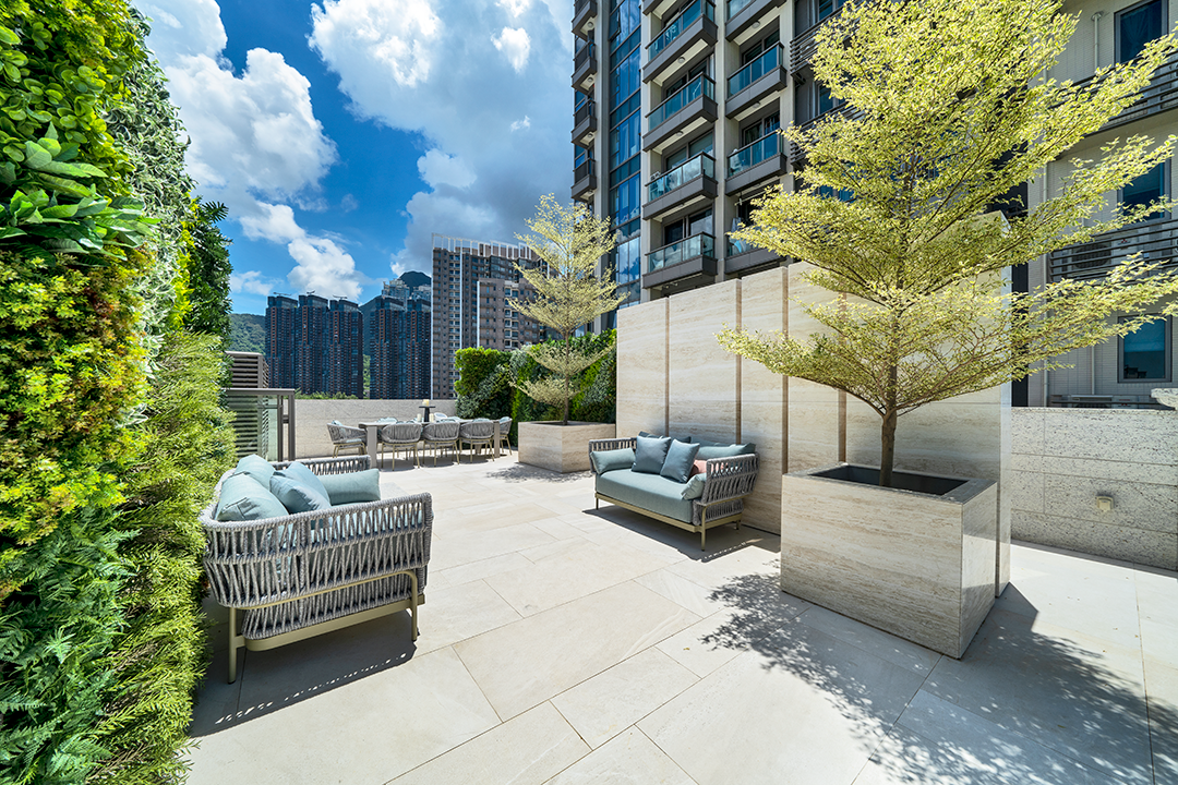 顶层的天台静谧开阔,绿植丛生,静可拥抱自然;放置户外家具,弥合了自然与人居的界限,动可乐享高质量社交聚会。