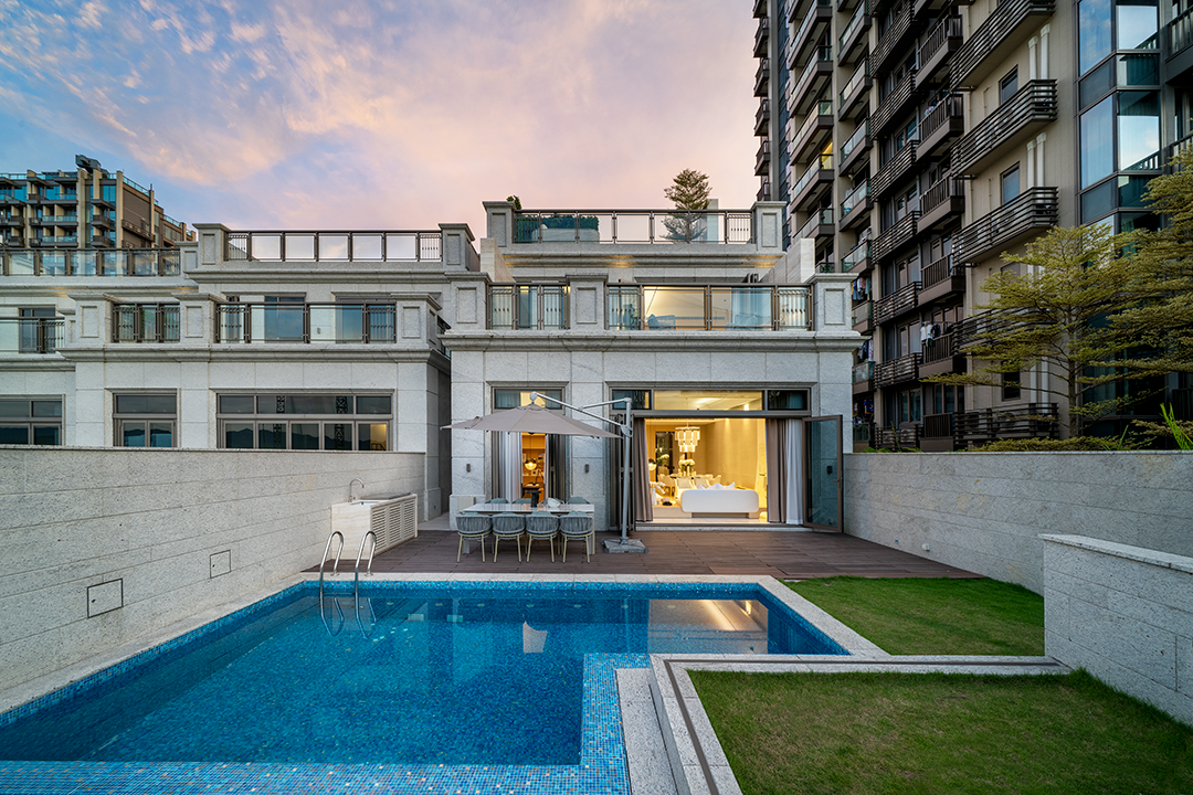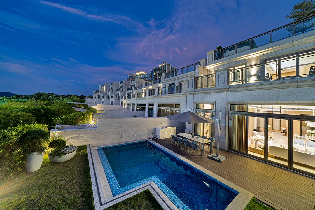这座两层式的别墅位于香港马鞍山碧桂园泓碧住宅区,配套私家花园泳池与顶层天台,坐拥自然景观及吐露港开扬海景等绝佳的先天条件。