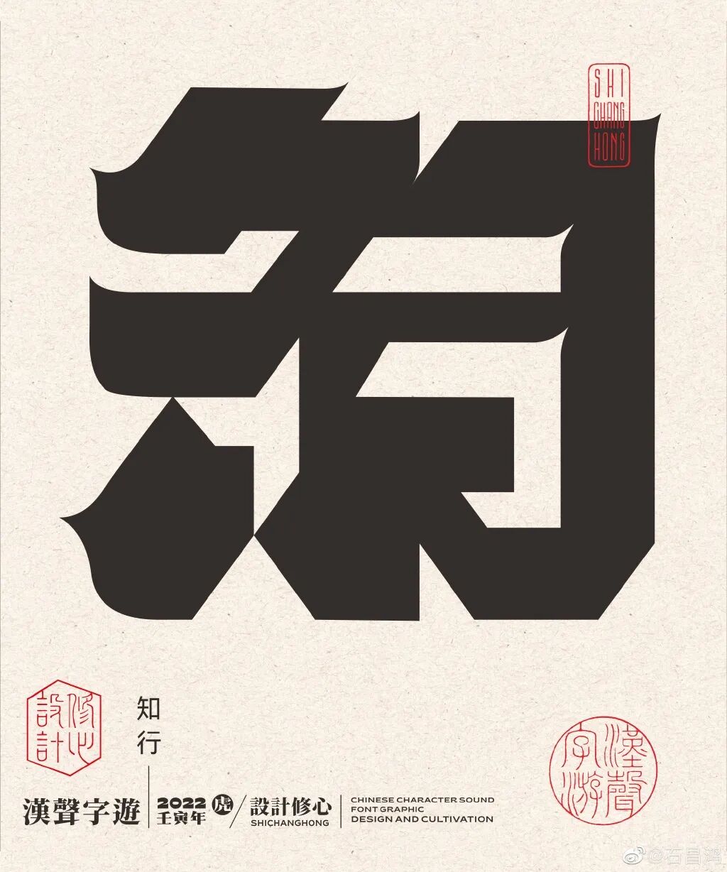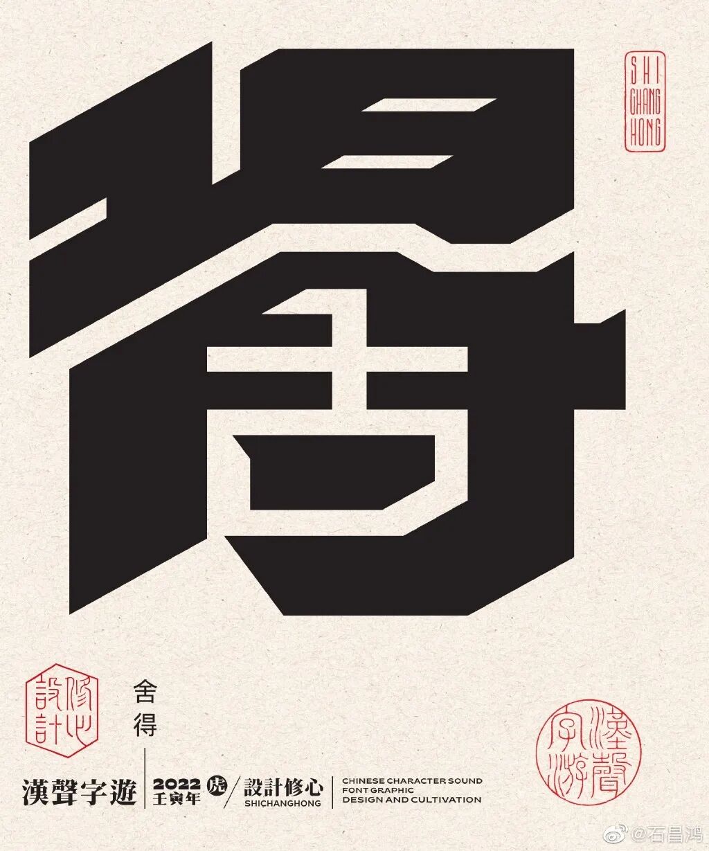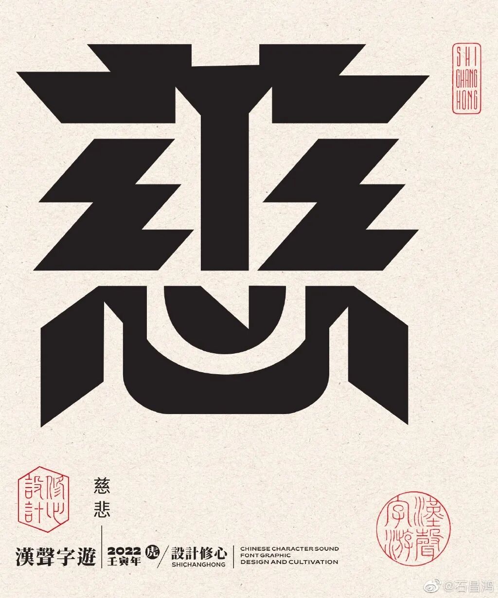 最近,石昌鸿又出新作品了!再发大招,独特的汉字正负形字体设计,创意太妙了,每个汉字里面都蕴含着2个字组成一个词语,这难度可想而知。果然中国风才是最diao的!