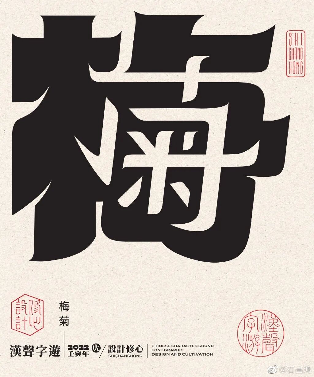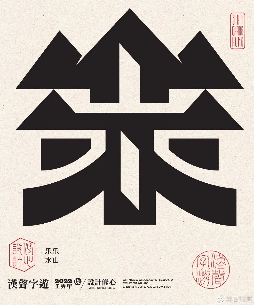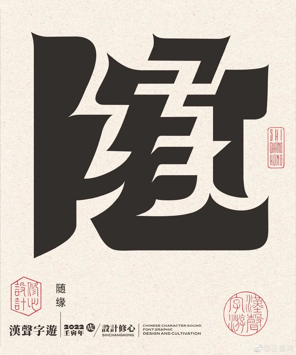 最近,石昌鸿又出新作品了!再发大招,独特的汉字正负形字体设计,创意太妙了,每个汉字里面都蕴含着2个字组成一个词语,这难度可想而知。果然中国风才是最diao的!