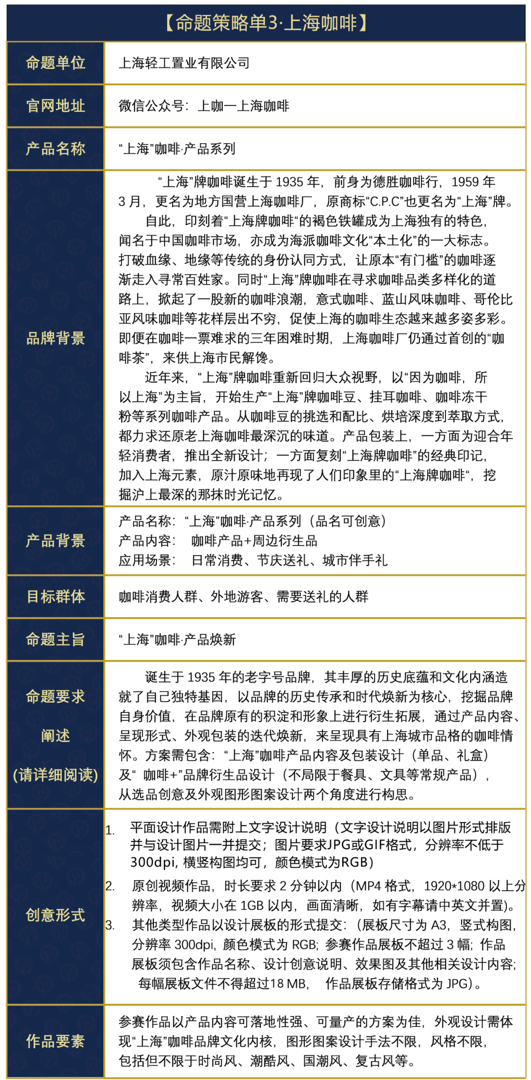 2、作者需保留CMYK格式,300dpi的可用于媒体传播,设计印刷生产的位图源文件或矢量文件(最终需提供AI、PSD等格式),参与竞赛的作品可能会得到相应企业的实际应用;老字号公司的选择与评价将成为评选的重要内容。