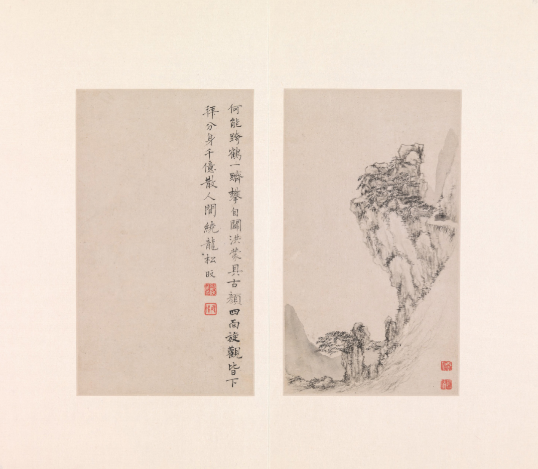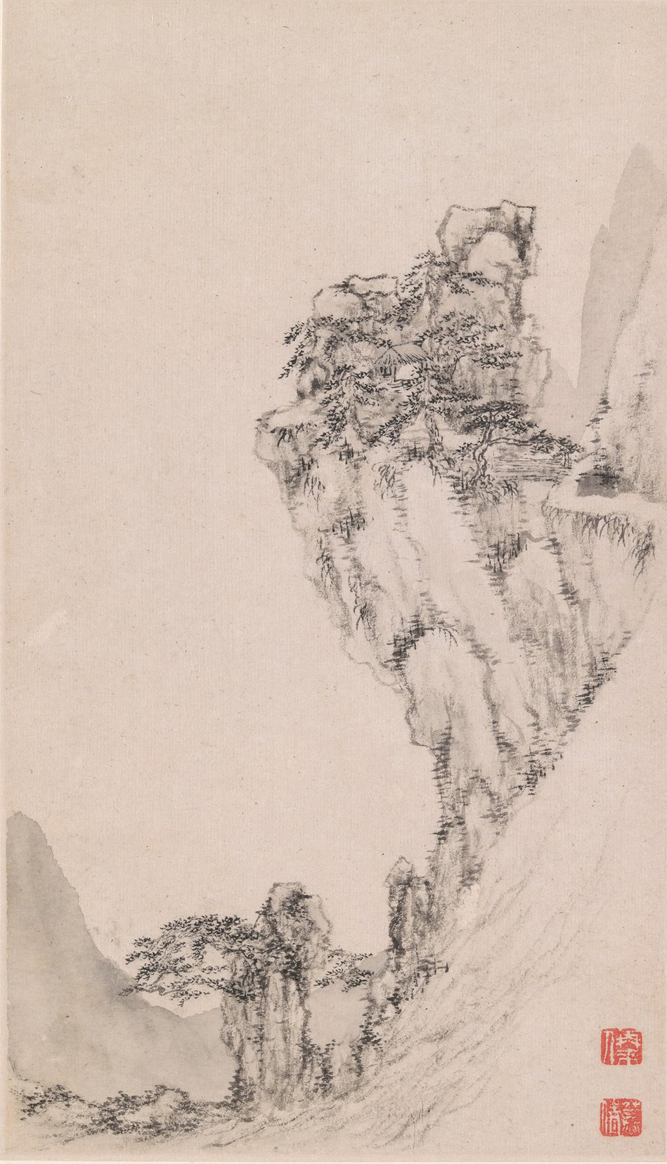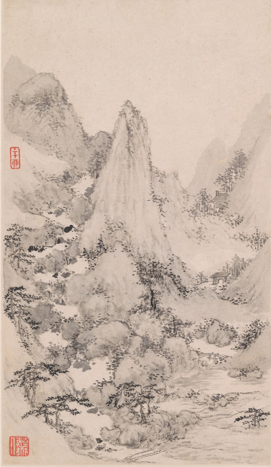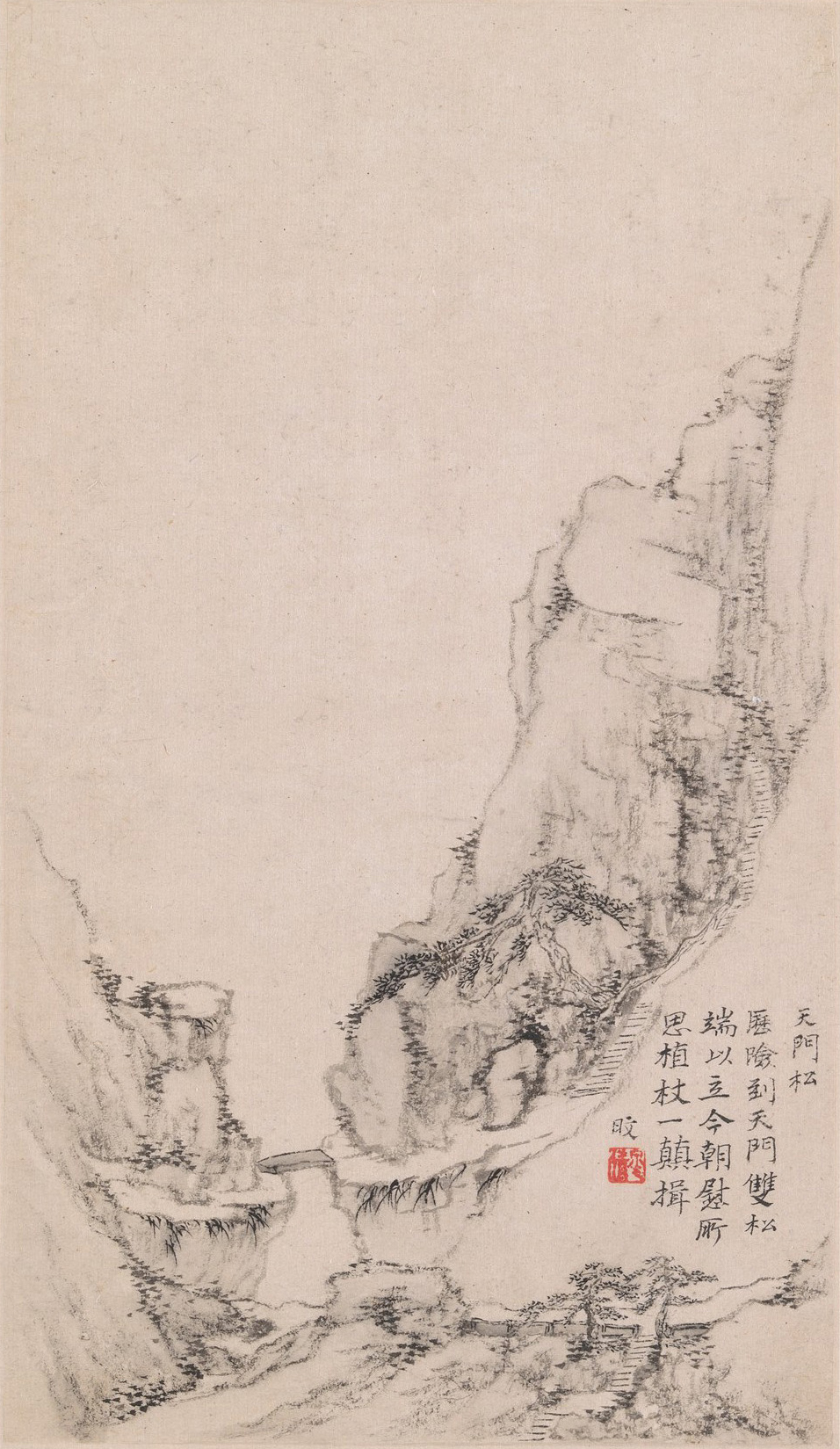 郑旼(1632或1607-1683年) ,本名为“旻”,明亡后改为“旼”,取“无君之痛”意也。字慕倩,亦作穆倩,号遗苏,慕道人、荆蛮民。出生于新安歙县贞白里,即今天的安徽省黄山市歙县郑村。工诗文,善绘山水。宗法元人,近学弘仁。所画山水以乾笔见胜,侧锋取势,意境幽僻澹逸,自具风貌。为新安画派名家之一。