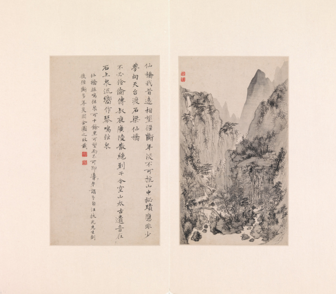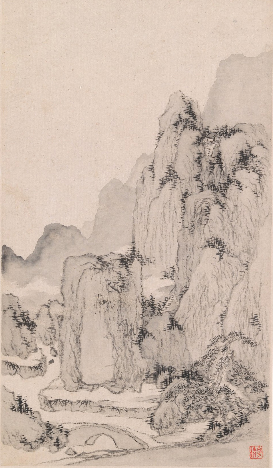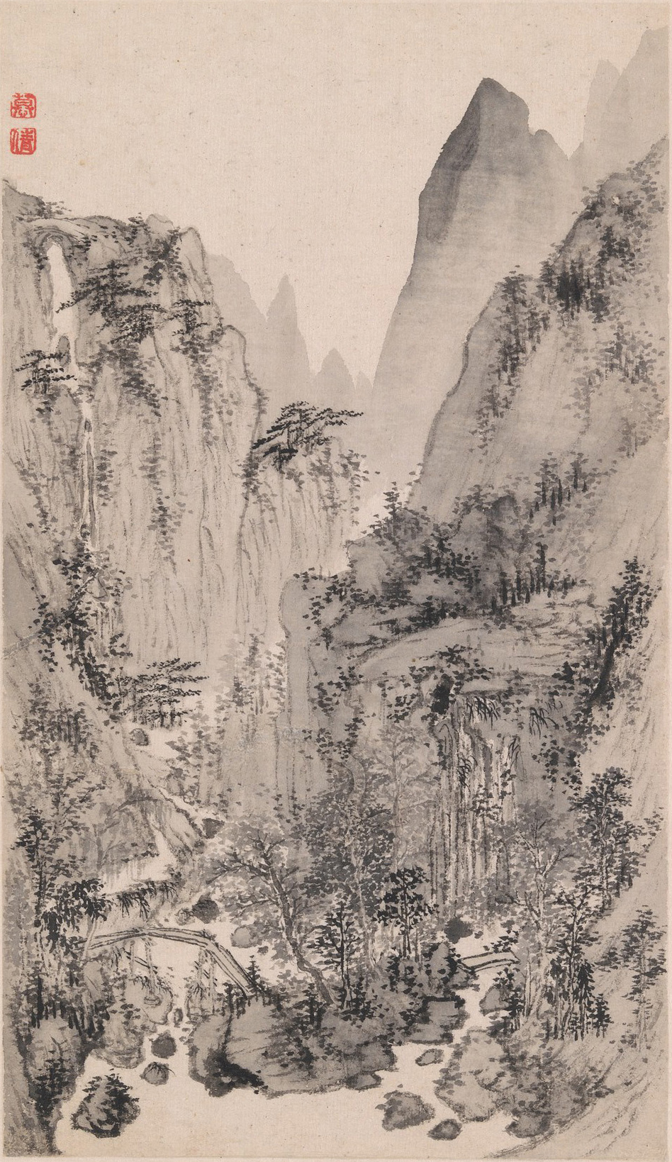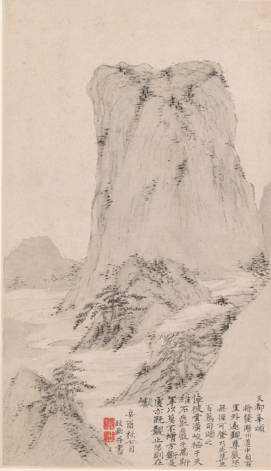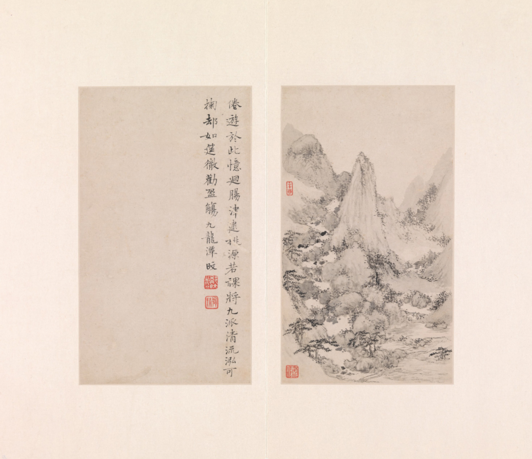 郑旼(1632或1607-1683年) ,本名为“旻”,明亡后改为“旼”,取“无君之痛”意也。字慕倩,亦作穆倩,号遗苏,慕道人、荆蛮民。出生于新安歙县贞白里,即今天的安徽省黄山市歙县郑村。工诗文,善绘山水。宗法元人,近学弘仁。所画山水以乾笔见胜,侧锋取势,意境幽僻澹逸,自具风貌。为新安画派名家之一。