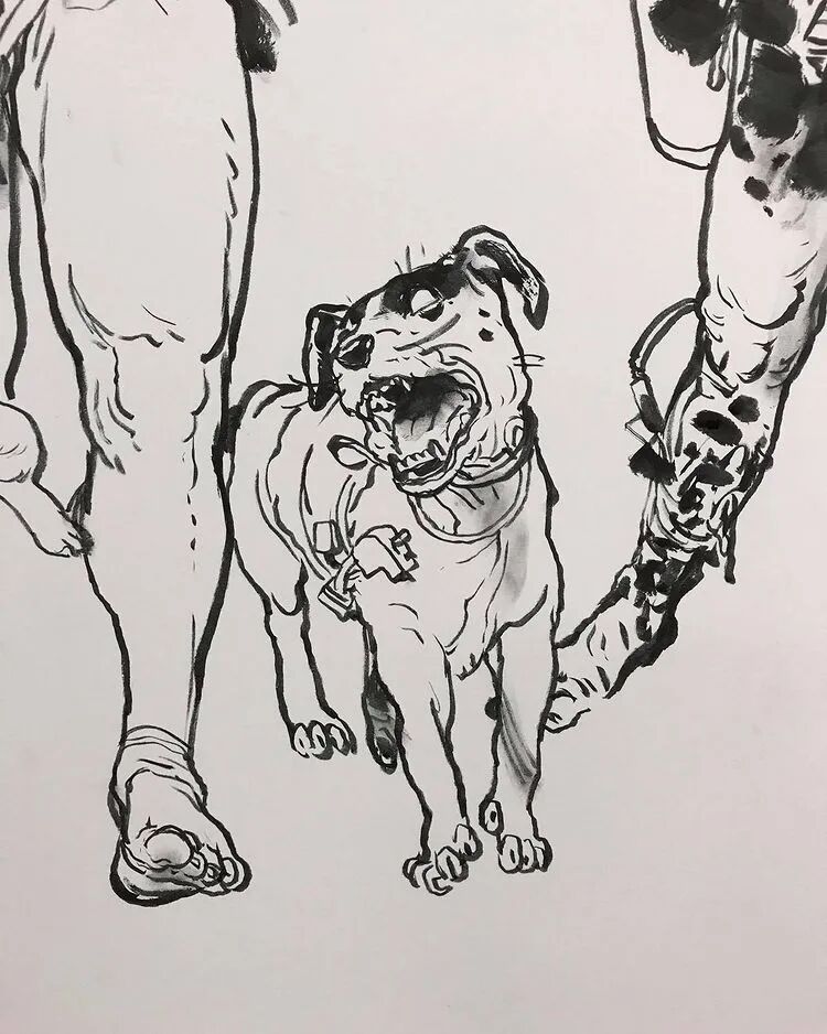 因其作画落笔之前从不打草稿,构图布局、章法考虑全在心中,故被称为“人肉打印机”,笔触之快,画面感、故事性之强叫人惊叹。