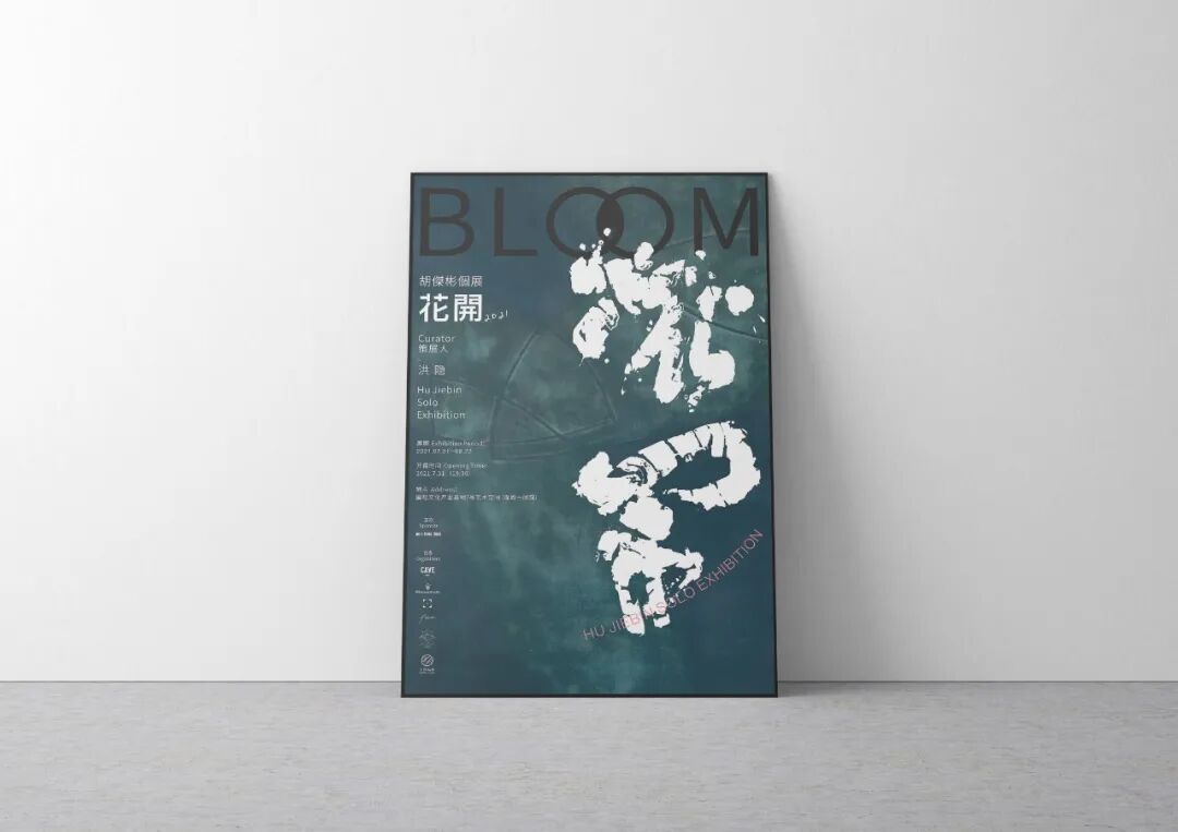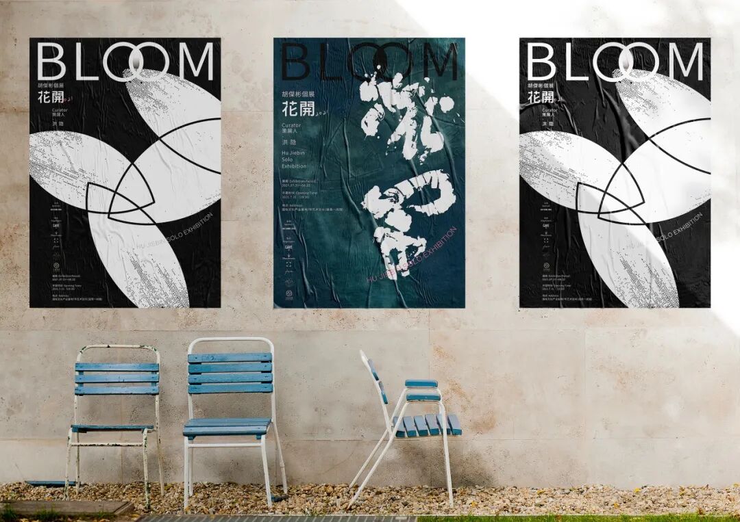 设计说明 | 海报为青年漆艺家胡杰彬个展-花开所设计的主视觉海报。画家认为花开是对空间向外探求的几何模拟;是对能动意识跨生物隔绝的几何书写!花开了,你们就都看到了:抽象绘画所具有的--地壳、地幔、地核--横截面,一个文化全阶的横截面。所以海报设计为抽象几何风格,大胆的几何花瓣元素占画面大比例,虽然花辨被画面裁切了部分图形,但图形具有延伸性,有向未知探索的意境,也贴合了画家本次展览的主题。