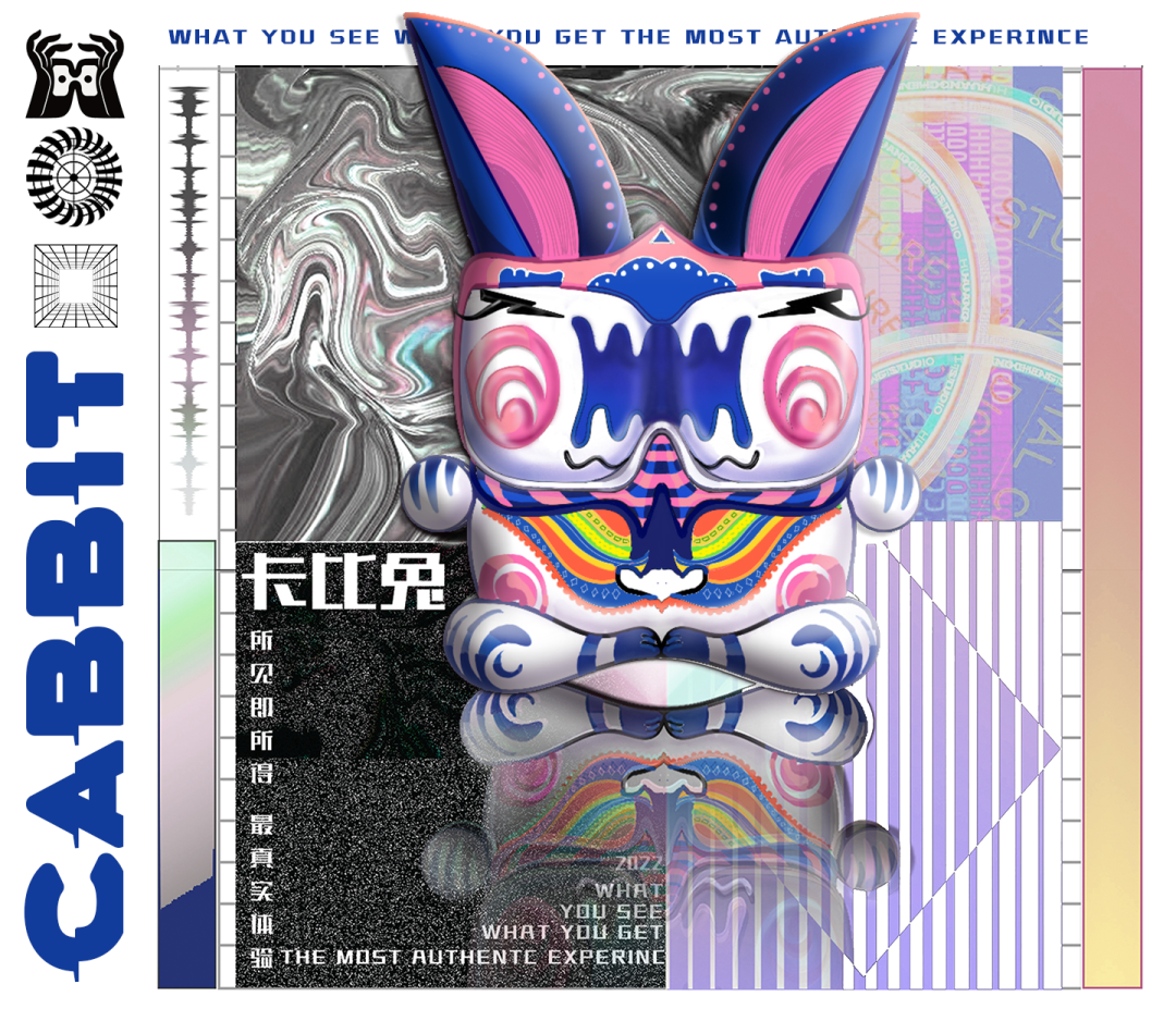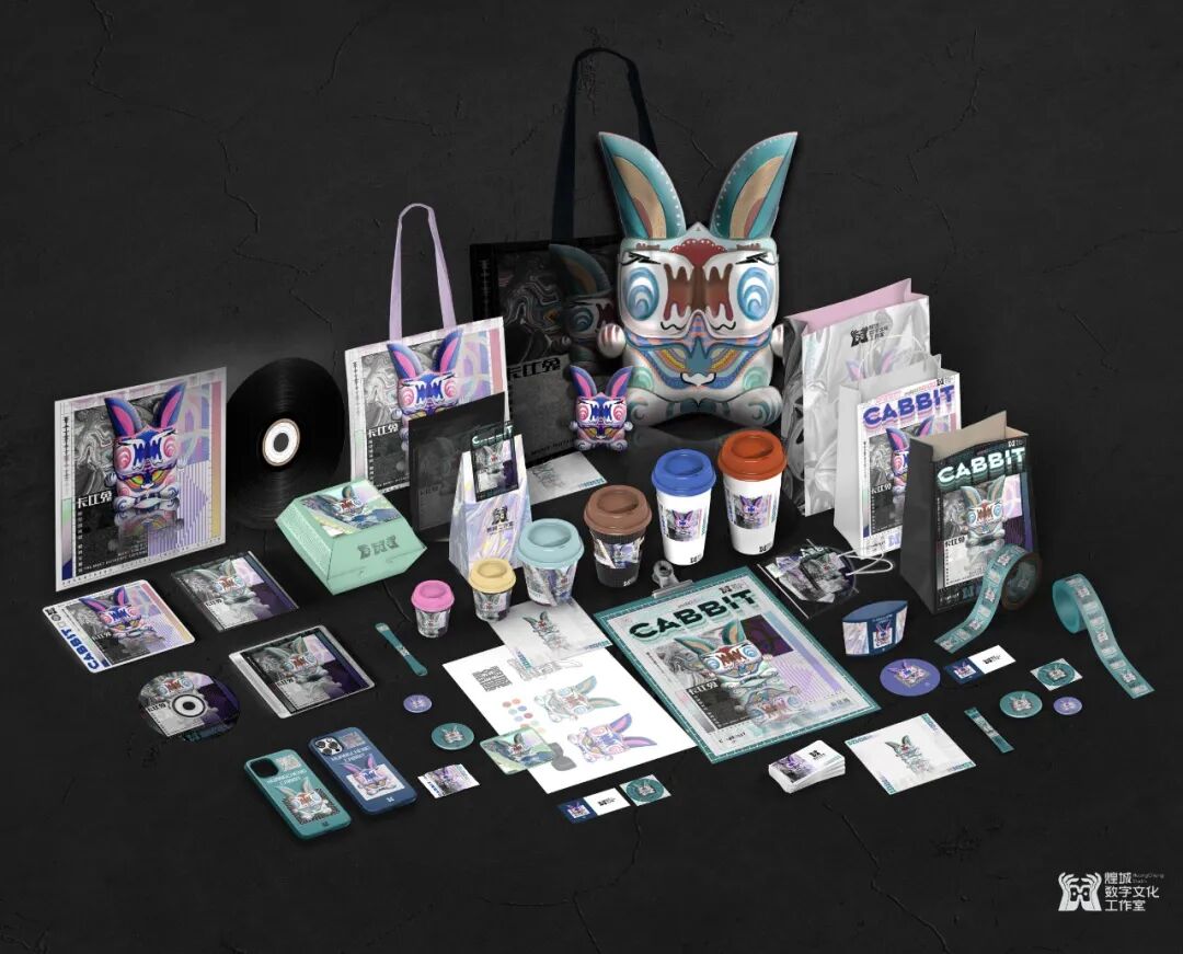 设计说明 | 以敦煌主题色进行搭配设计,整体灵感来源于敦煌文化故事里的“兔”与“猫”进行造型设计,同时利用其英文发音“Rabbit”与“cat”进行结合设计出“Cabbit”卡比免这一造型。海报以工作室潮流与时尚的定位采取“酸性设计”风格,打破传统的海报设计方式突出卡比兔的造型,文创产品更是在此基础上进行了不同排版设计来展现每个产品的特点等。