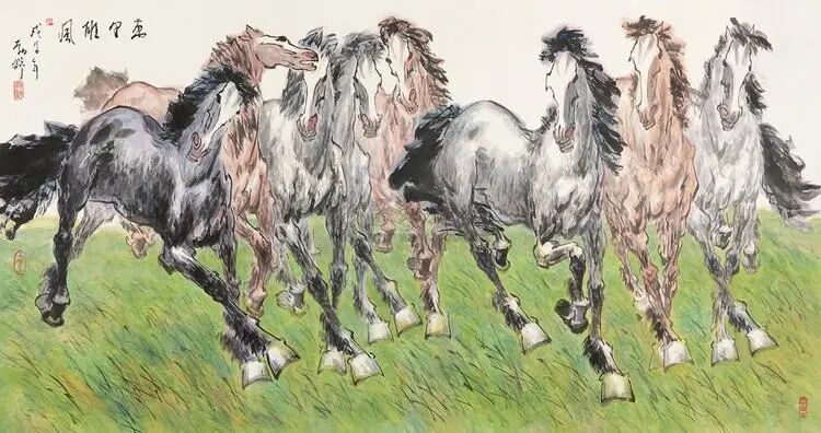 刘勃舒擅长画马,也兼人物。作为徐悲鸿大师的关门弟子,重写生、讲格调、以书法用笔入画。画面格调高雅,富有韵律感和时代感。