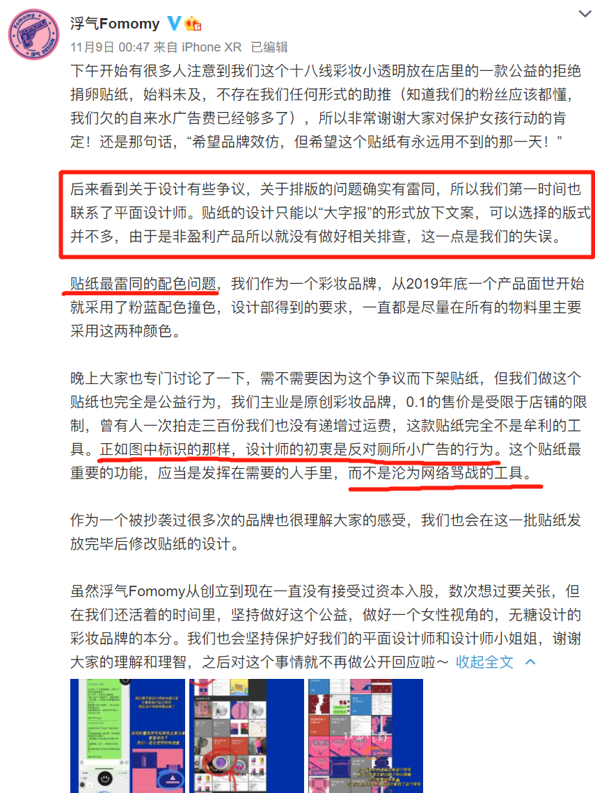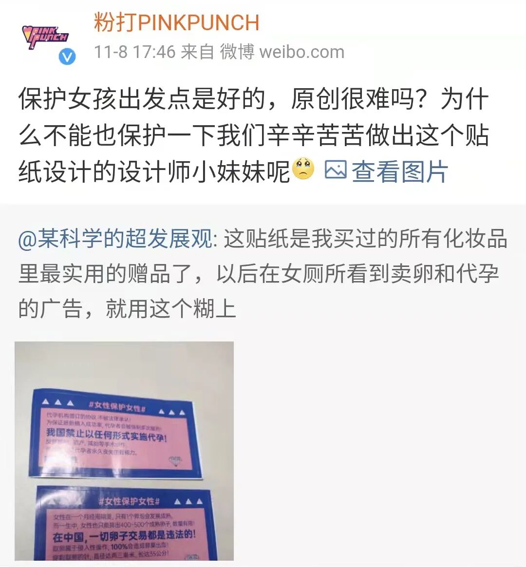 原因是一个小众彩妆品牌赠送的公益贴纸