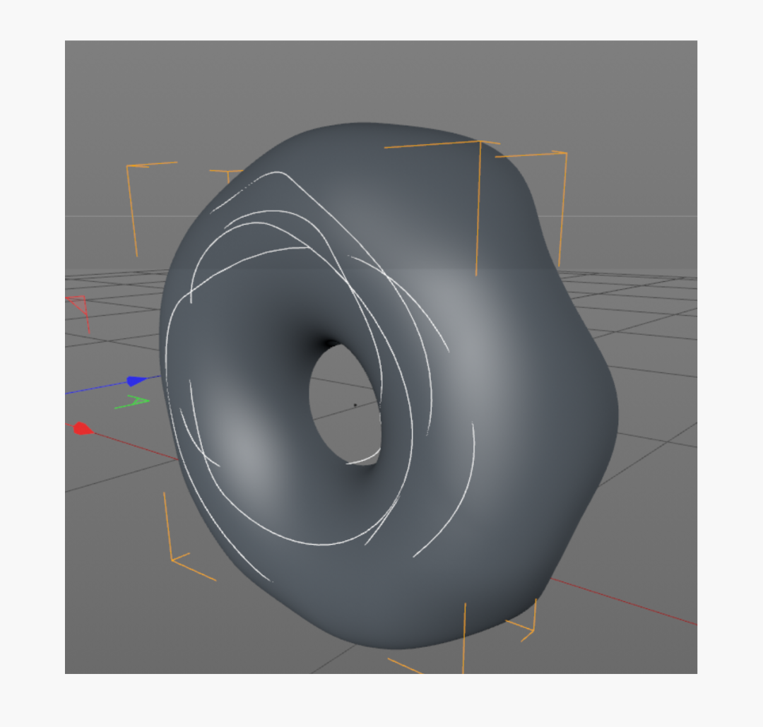 然后在你的甜甜圈上一顿乱画,这个样条就可以自动吸附在你的甜甜圈上: