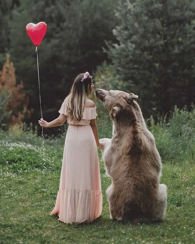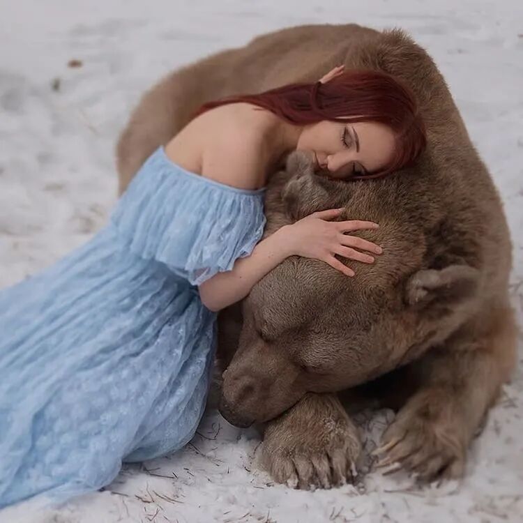 如果你看了她拍摄的照片,一定会佩服她的勇气,因为在她的镜头下,最常出现的主角,就是各种凶猛的野兽,比如熊、狼、狐狸等等,但是当你仔细看的时候,又会发现,奥尔加·巴兰采娃拍摄的野兽,似乎并没有那么可怕,它们依偎在美女的身旁,眼神里都是温柔。