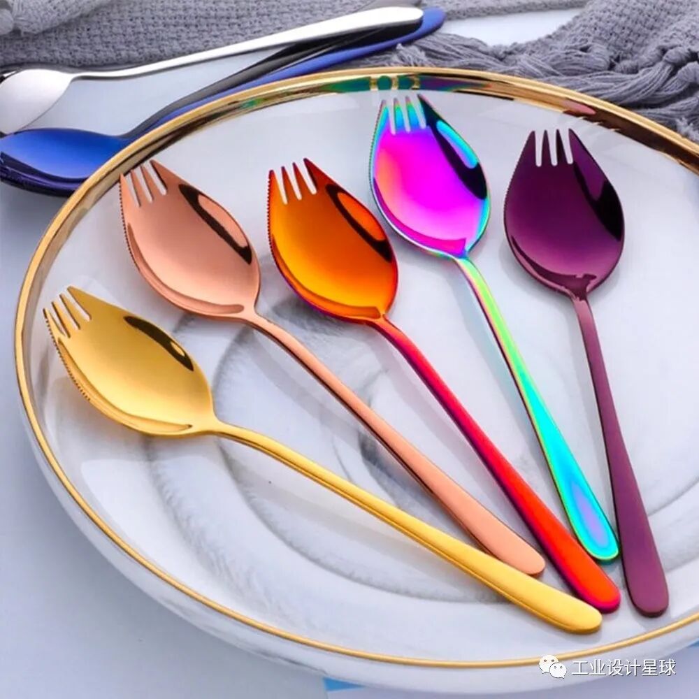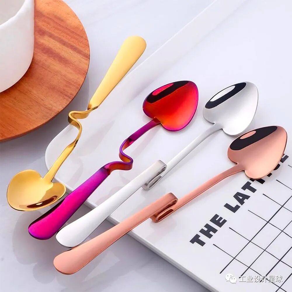 集功能和颜值于一体的勺子设计,通过对勺子的造型改变并且具有趣味性,彰显了设计师的一颗童心。