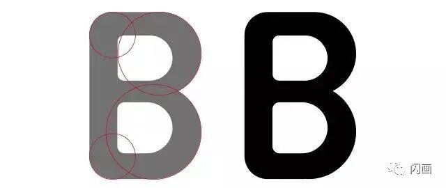 1.提炼出关键字母”B”,使用比较圆润的外轮廓。上下两个空白的洞用来做负形;