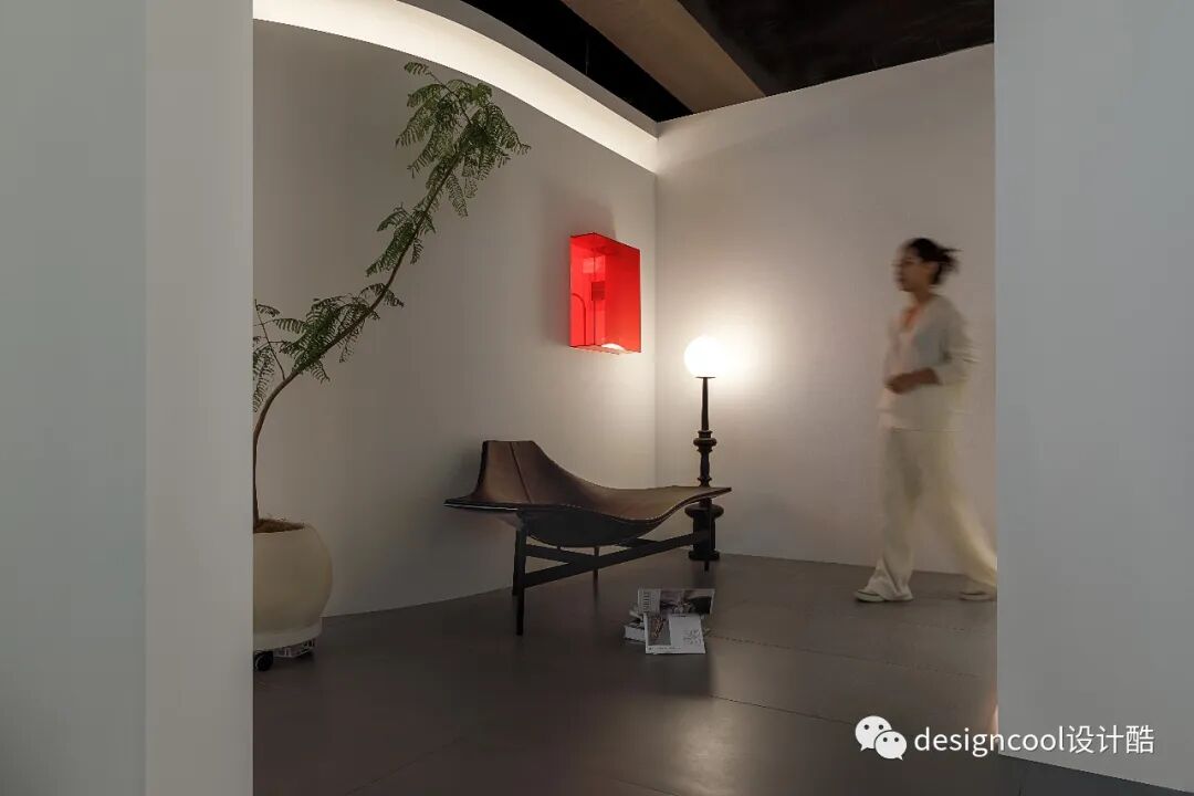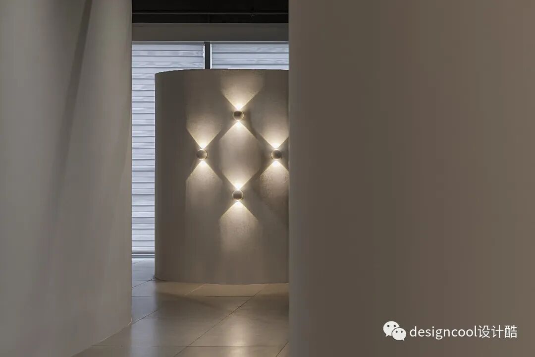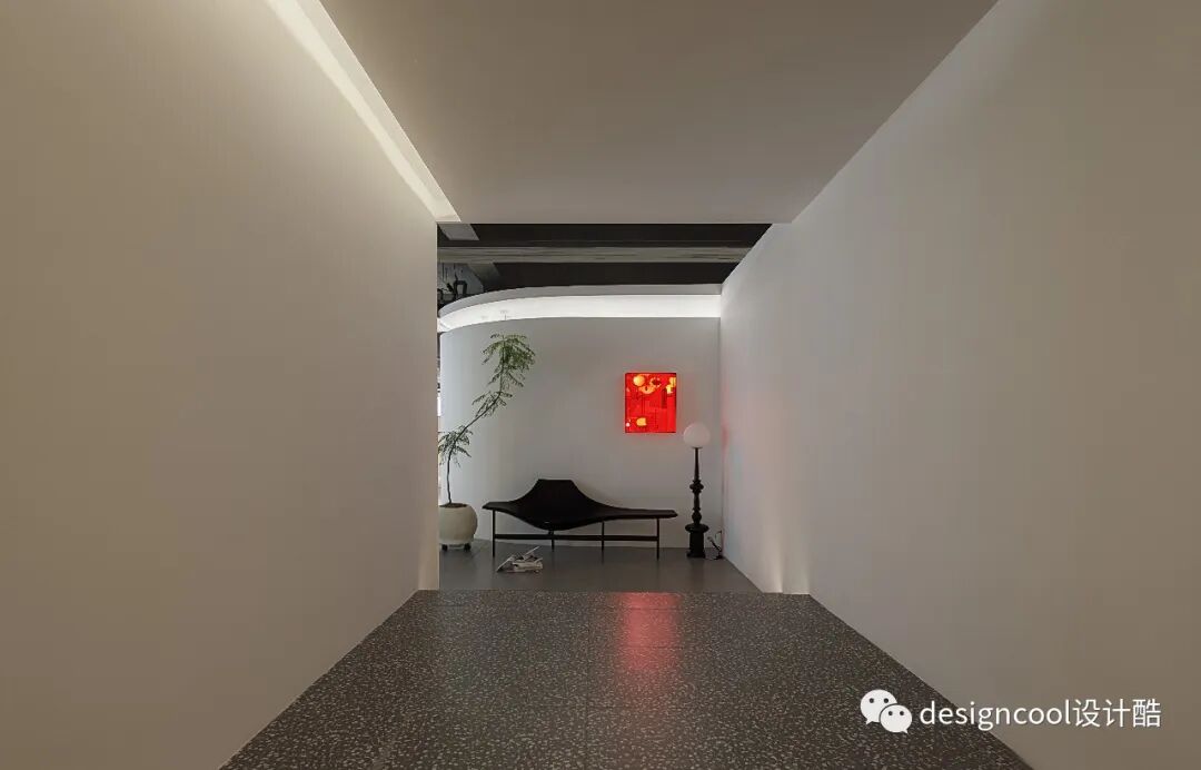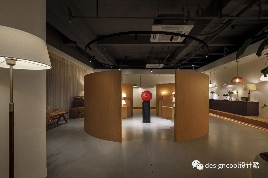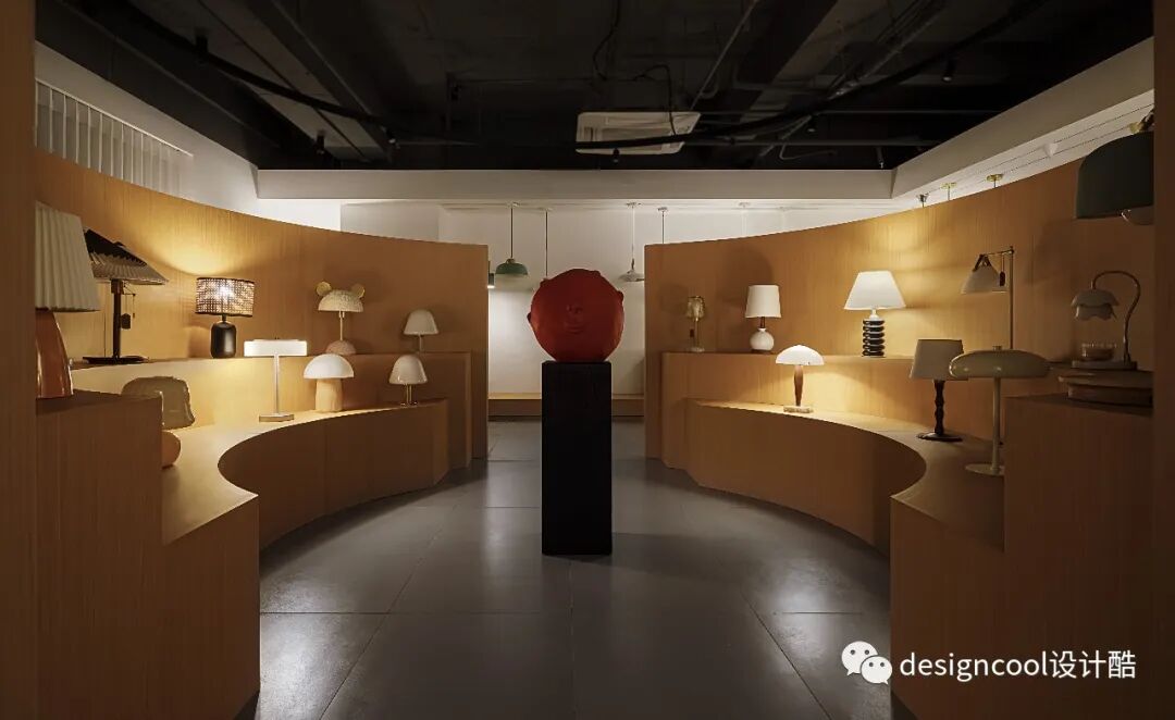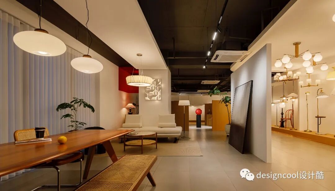 顶面与墙面以极简造型自然衔接,既是灯具展厅也是家的艺术馆。