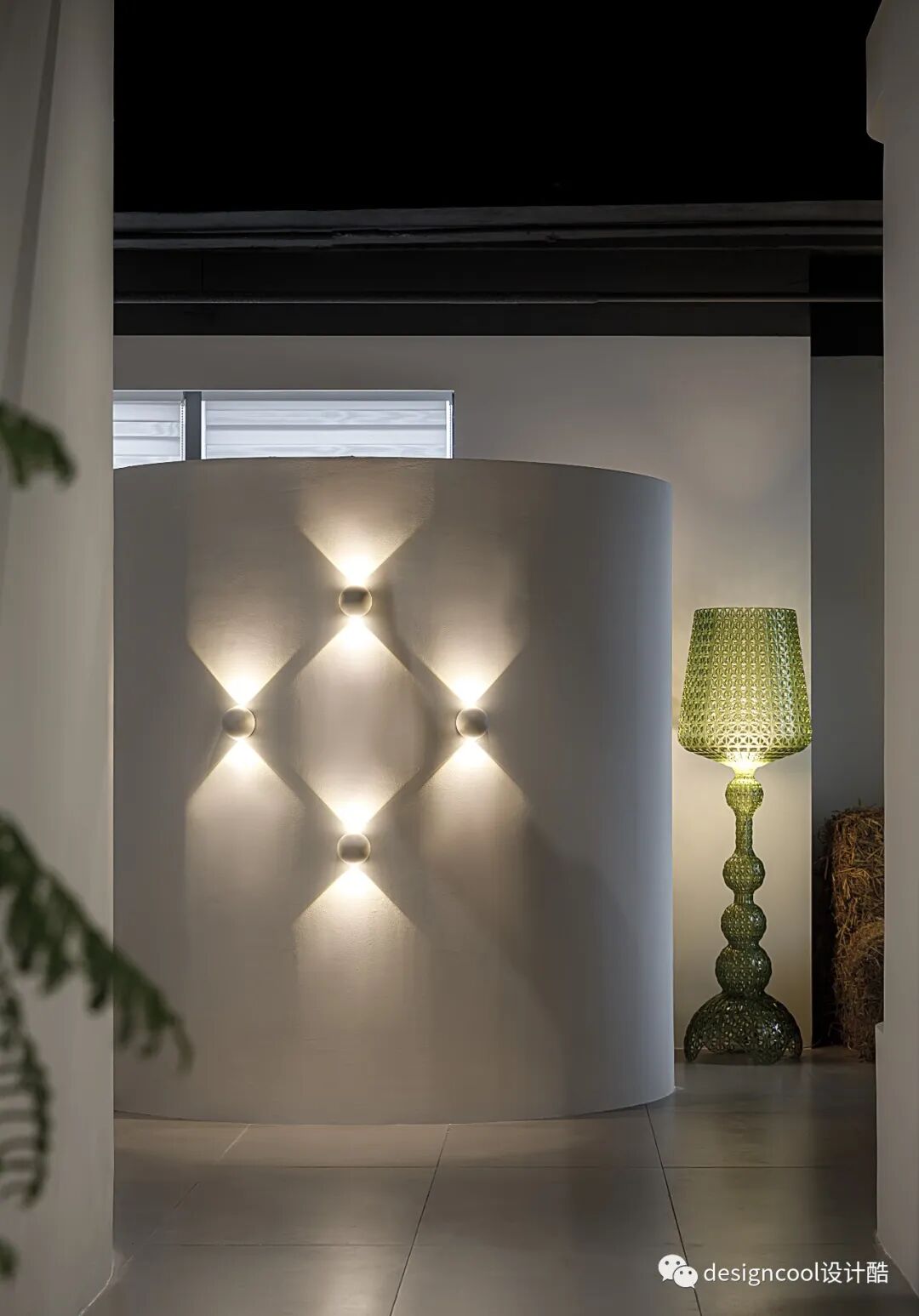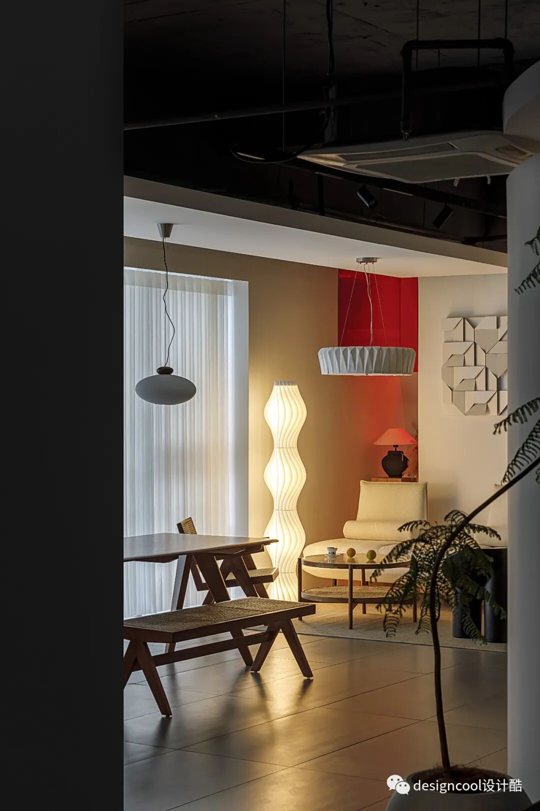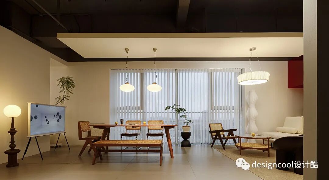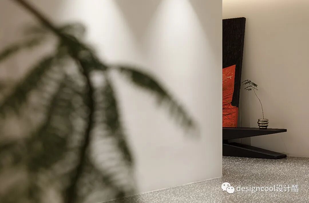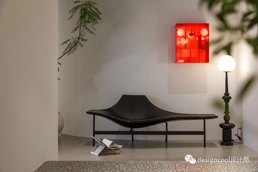 顶面与墙面以极简造型自然衔接,既是灯具展厅也是家的艺术馆。