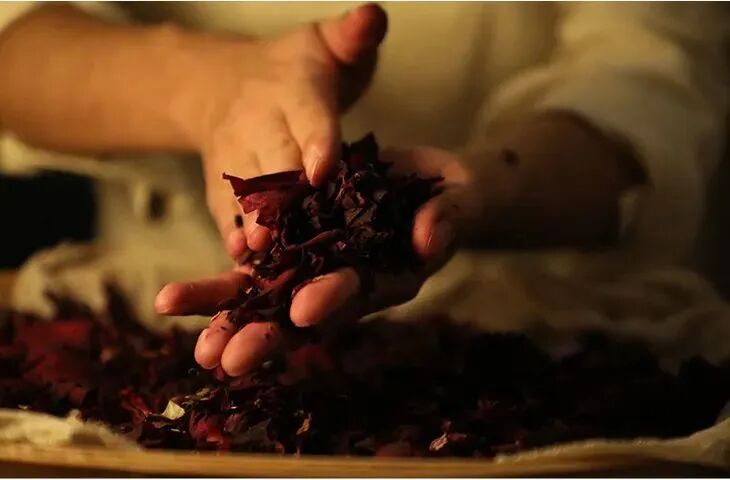 依《花薰香诀》中描述,铺一层莲花放一层沉香,熏窨四五日后蒸馏取珍贵的精华油,才让转瞬即逝的迷人香气得以天长日久。