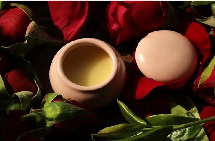 另取龙井浸泡甜杏仁油中7-10日,而后将莲花精华油、龙井茶油,与蜂蜡混合制成香膏。