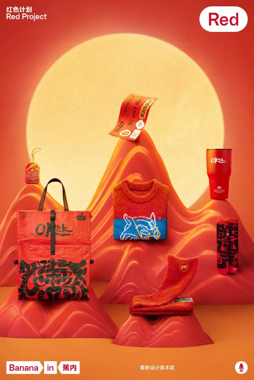 要穿红,就穿全套,家居服饰品牌Bananain蕉内发起“红色计划”,重新设计国人新年基本款。