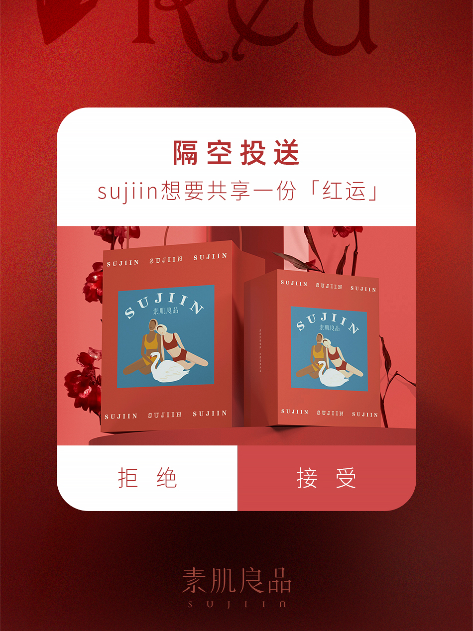 红是热烈、自信、勇敢,素肌良品尊重了中国传统的新年仪式感,以自己的方式重新演绎了关于“红”的浪漫。