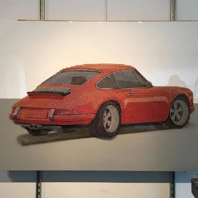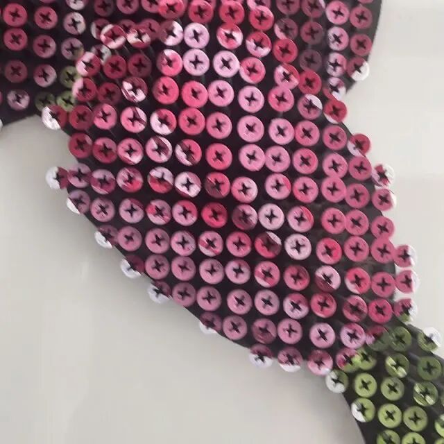 可以说,艺术家们在“非常规”的道路上越走越远了,前两天小绛刚跟大家分享了一个用铁丝来“画画”的艺术家,今天这一位更硬核了,直接拿螺丝钉来作画,打造的立体画作可谓重量级,据了解,用料最多的一件作品用掉了将近一万根螺丝钉,假如一根螺丝钉的重量按10克来计算,那么10000根就是100千克,合200斤,一个大胖子的重量。这样的一个作品,恐怕得需要两个大胖子才能将它拿走。
