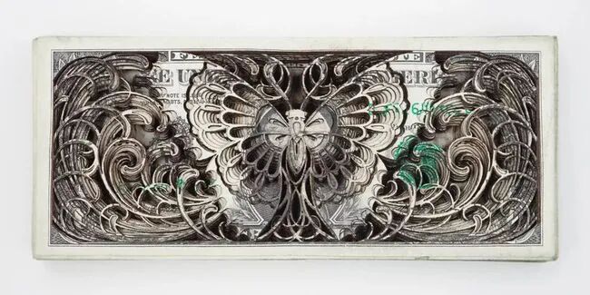 看到这里,想必有人会质疑:画作再大,也不过一张纸的厚度,区区一层钞票,能贵到哪里去?这就不得不提起美国艺术家斯科特(Scott Campbell)的“钞票雕塑作品”了。